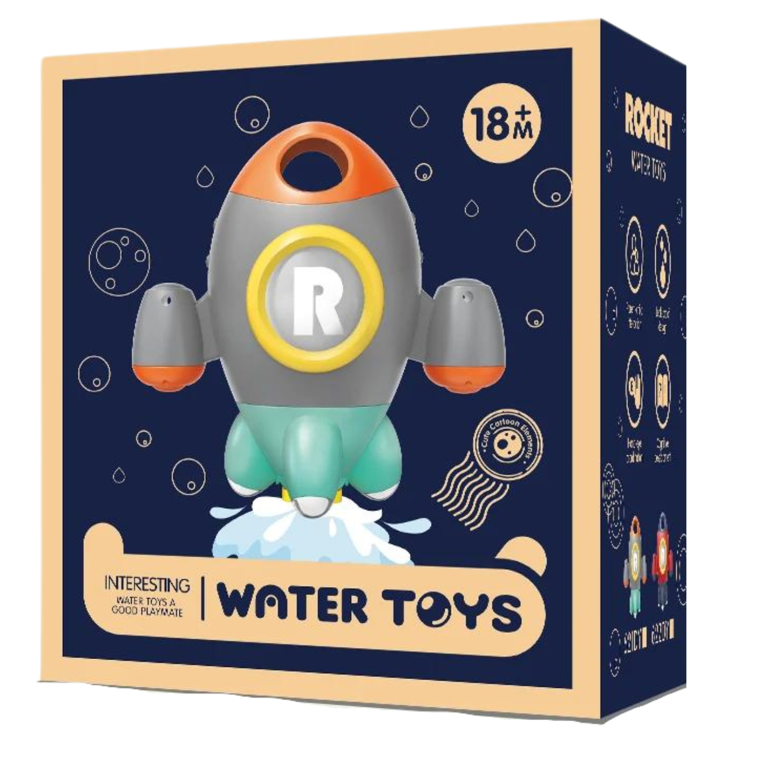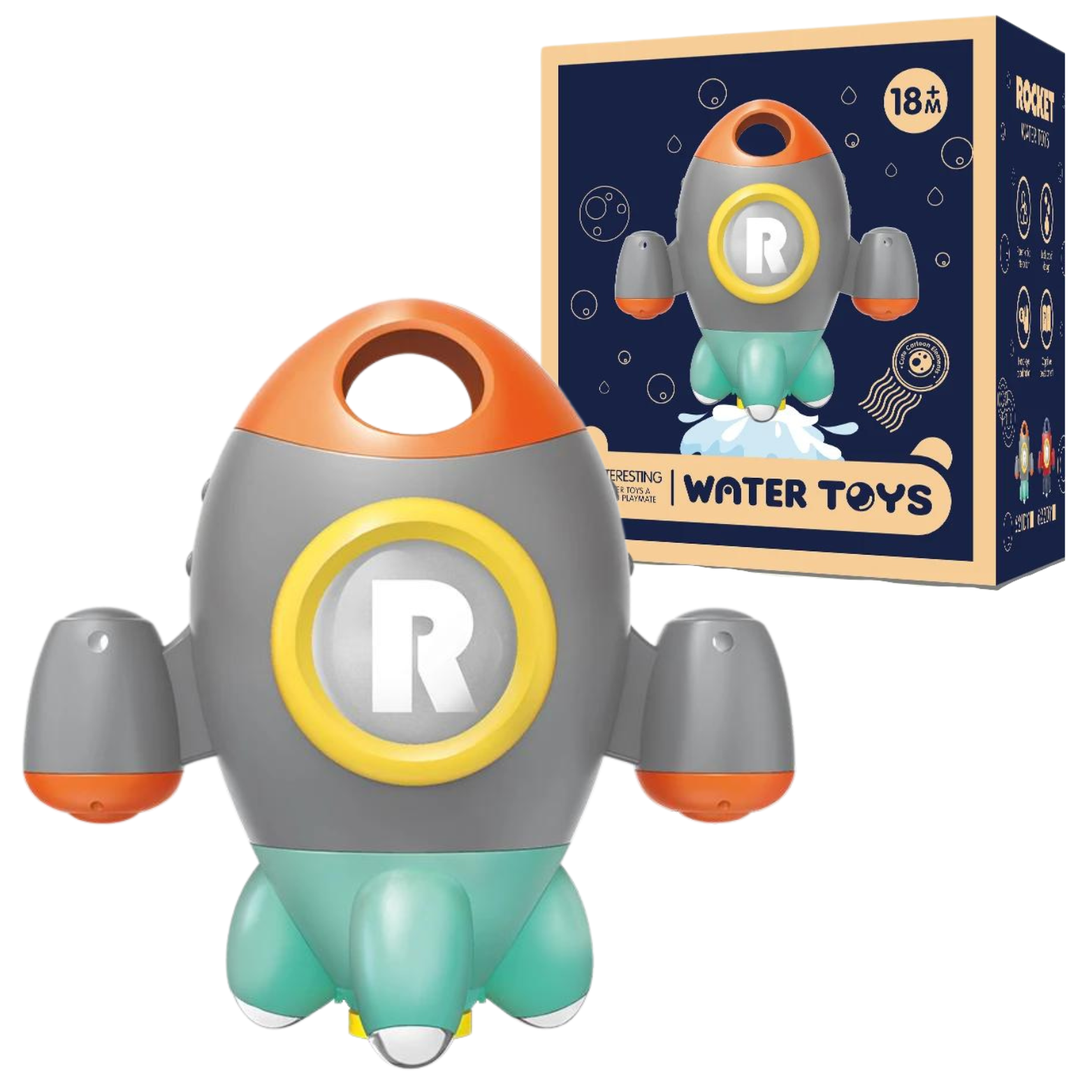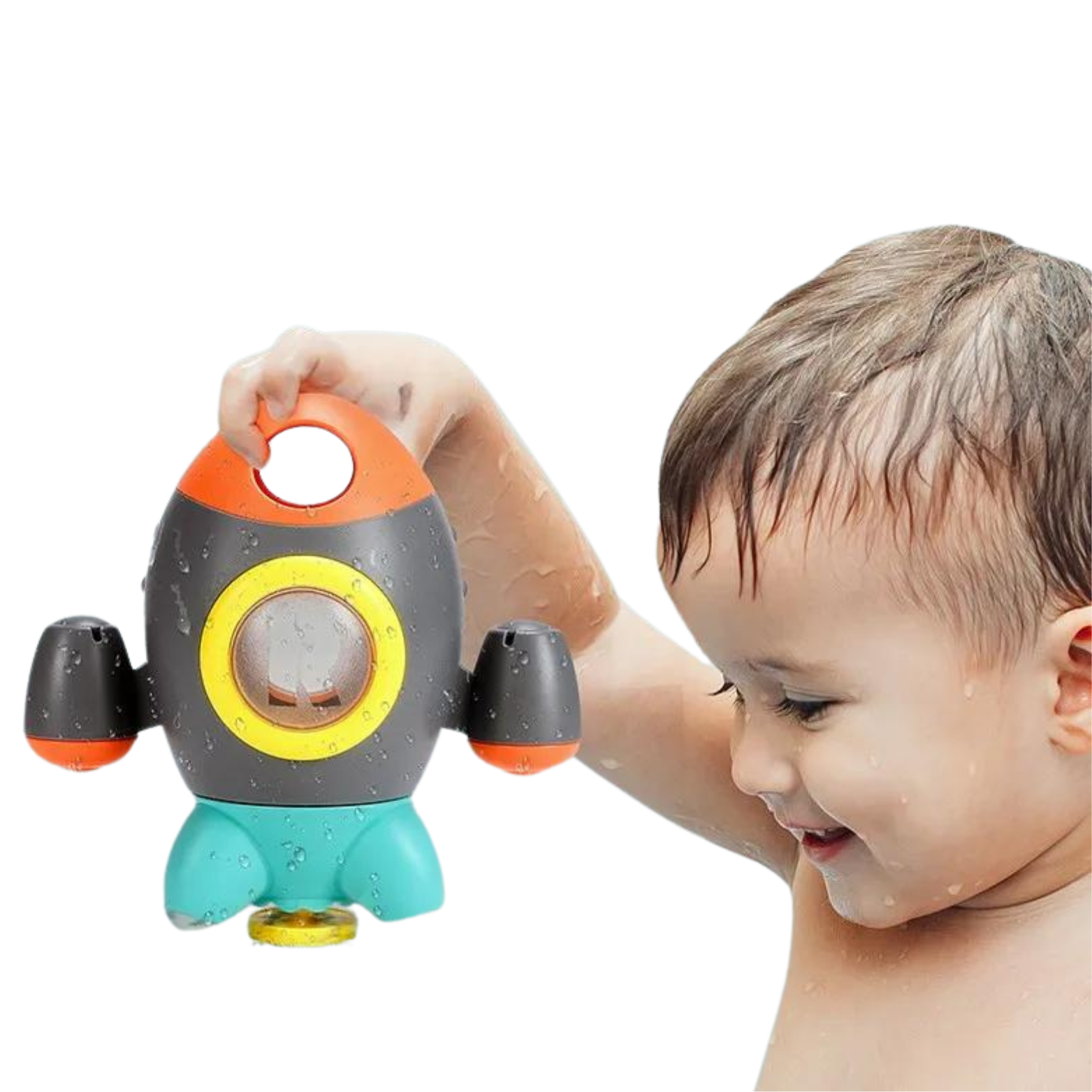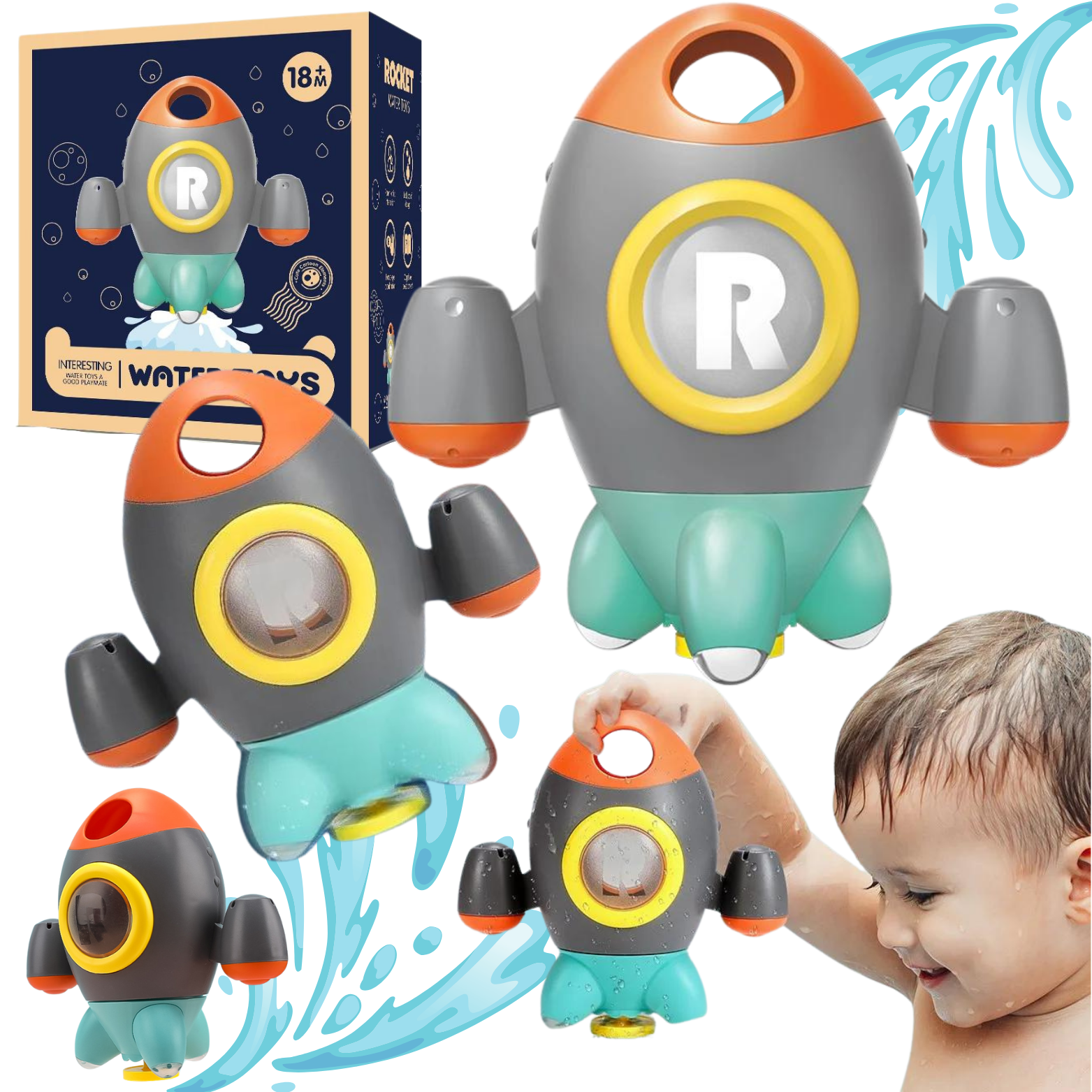 Zabawka do kąpieli: Podczas napełniania zabawki wodą z rakiety wyleci wiele strumieni wody, stwarzając efekt „deszczu” oraz naśladując wystrzeliwanie rakiety w kosmos. Jest to fascynujące doświadczenie dla malucha, które stymuluje jego zmysły i rozwija koordynację ruchową.