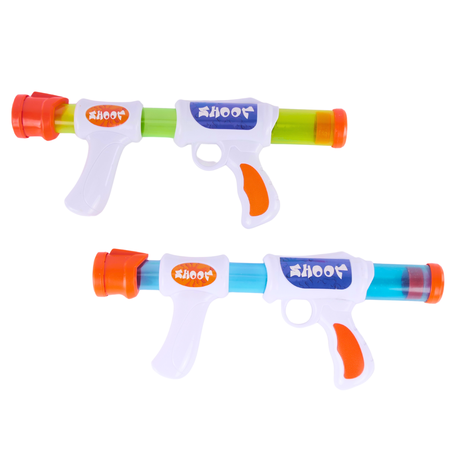 2 pistolety: Ergonomiczny kształt, intensywne kolory i trwałość wykonania sprawiają, że pistolety dołączone do zestawu zapewnią wygodną oraz komfortową zabawę. Dzięki 2 sztukom, w grę strzelecką można zagrać wraz z przyjaciółmi lub rodziną, organizując mini zawody i wyłonić najlepszego strzelca.