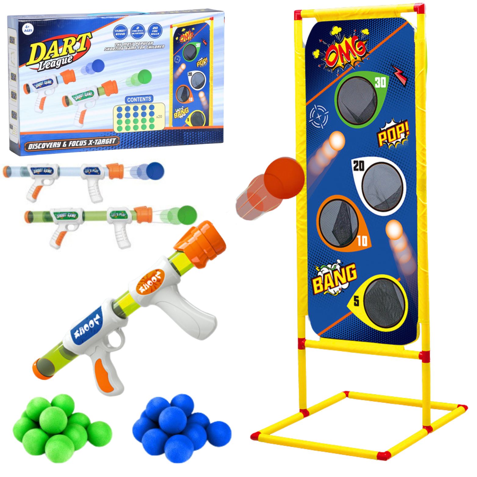 Niezwykły zestaw z 2 pistoletami i stojącą tarczą to fascynująca zabawka, która wciągnie każdego malucha, zapewniając wiele godzin frajdy i rozrywki. Tarcza strzelecka, dołączona do zestawu, wyposażona jest w system punktowy, który umożliwia śledzenie swoich osiągnieć, ułatwiając liczenie zdobytych punktów. Zabawka pozwala na samodzielną rozgrywkę, jak i na pojedynek pełen emocji z przyjaciółmi lub rodziną. 12 piankowych kulek, służących za pociski, pozwala na bezpieczne rozegranie wielu rund. Zestaw używany może być zarówno w domu, jak i na świeżym powietrzu, zapewniając aktywną zabawę i dbając o kondycję dzieci.