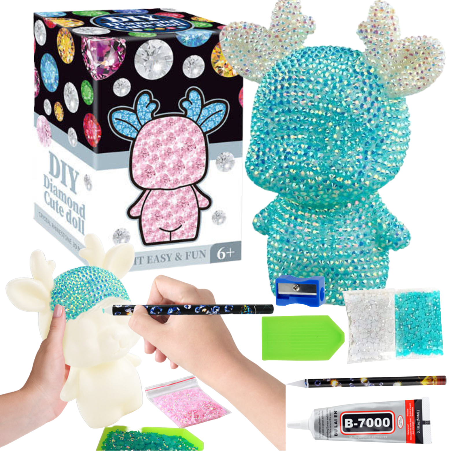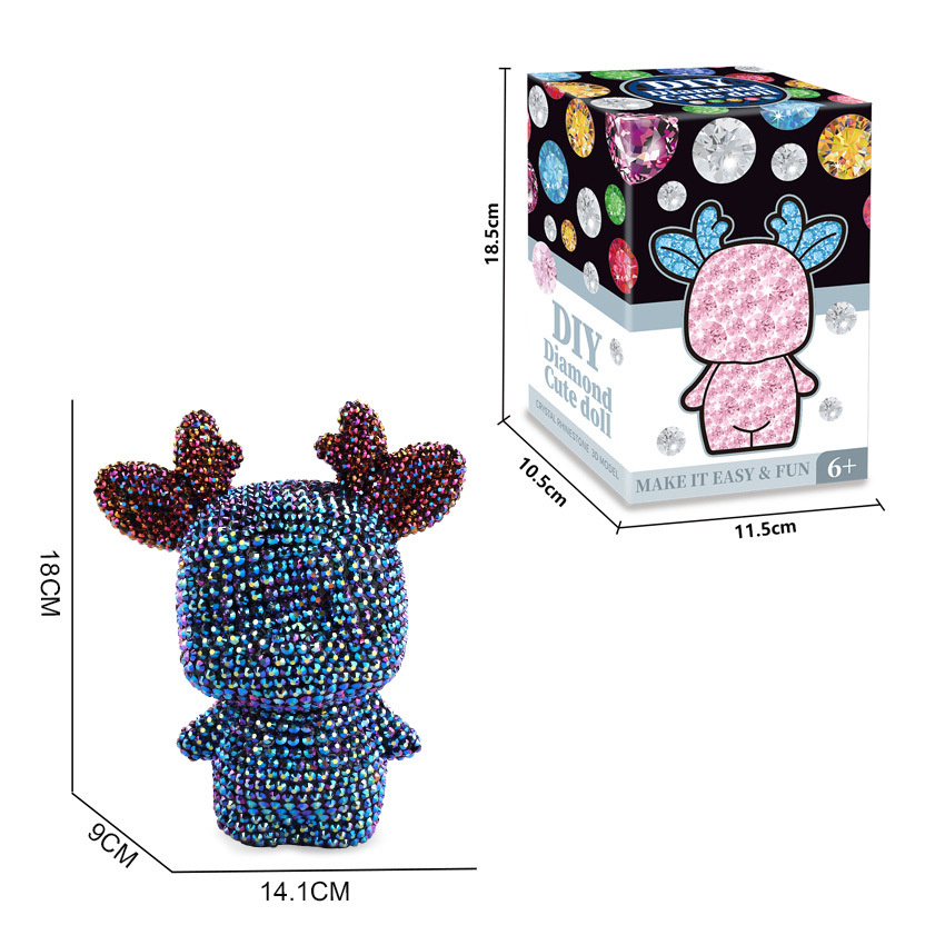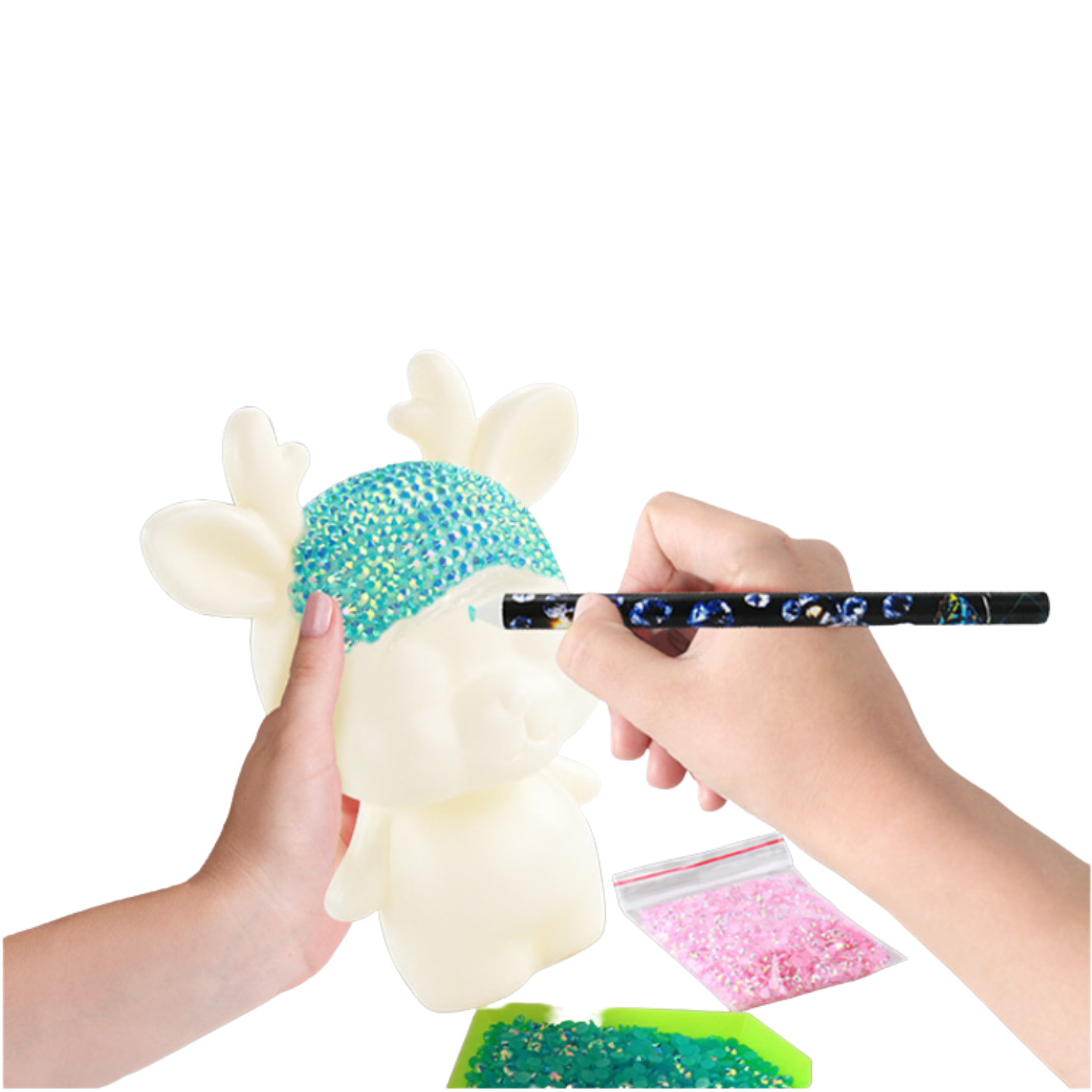 W zestawie znajduje się figurka jelonka, która stanowi bazę do wyklejania kryształkami.