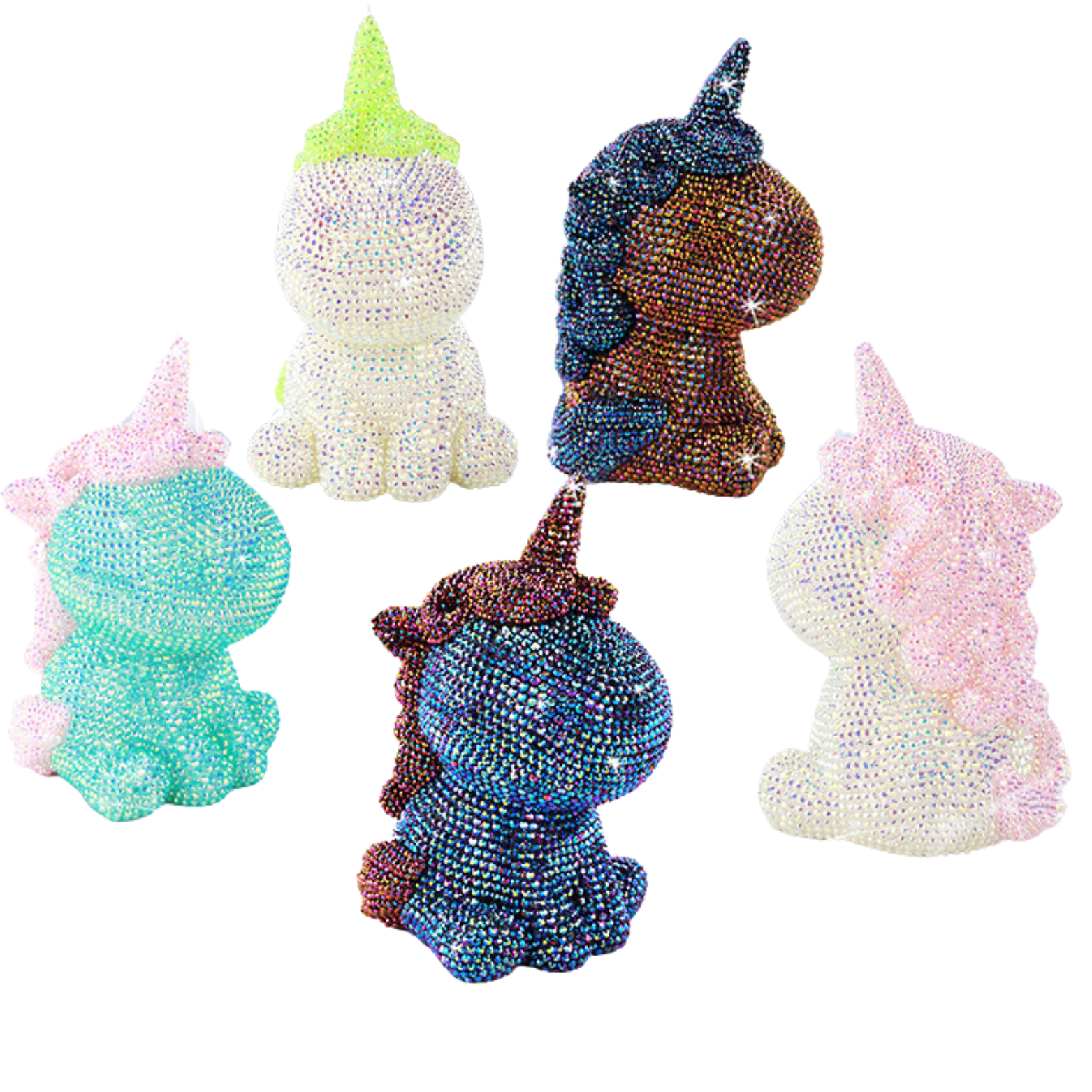 Aby stworzyć efektowną figurkę, zestaw zawiera kolorowe diamenciki w różnych kolorach. Kolorowe kryształki dodają blasku i sprawiają, że jednorożec staje się wyjątkowy i niepowtarzalny. Tacka na kryształki umożliwia wygodne przechowywanie i porządkowanie kryształków, zapewniając łatwy dostęp do nich w trakcie tworzenia.
