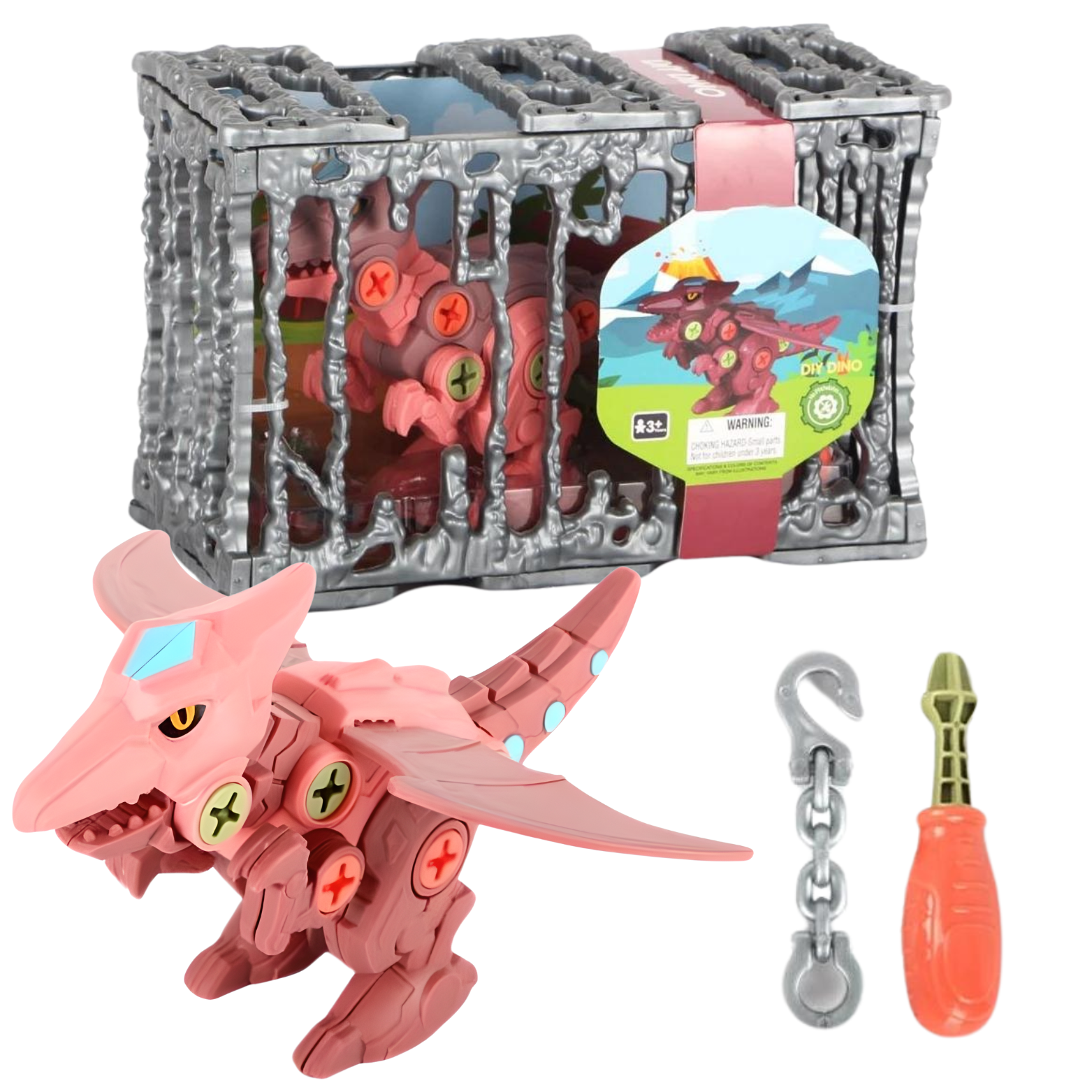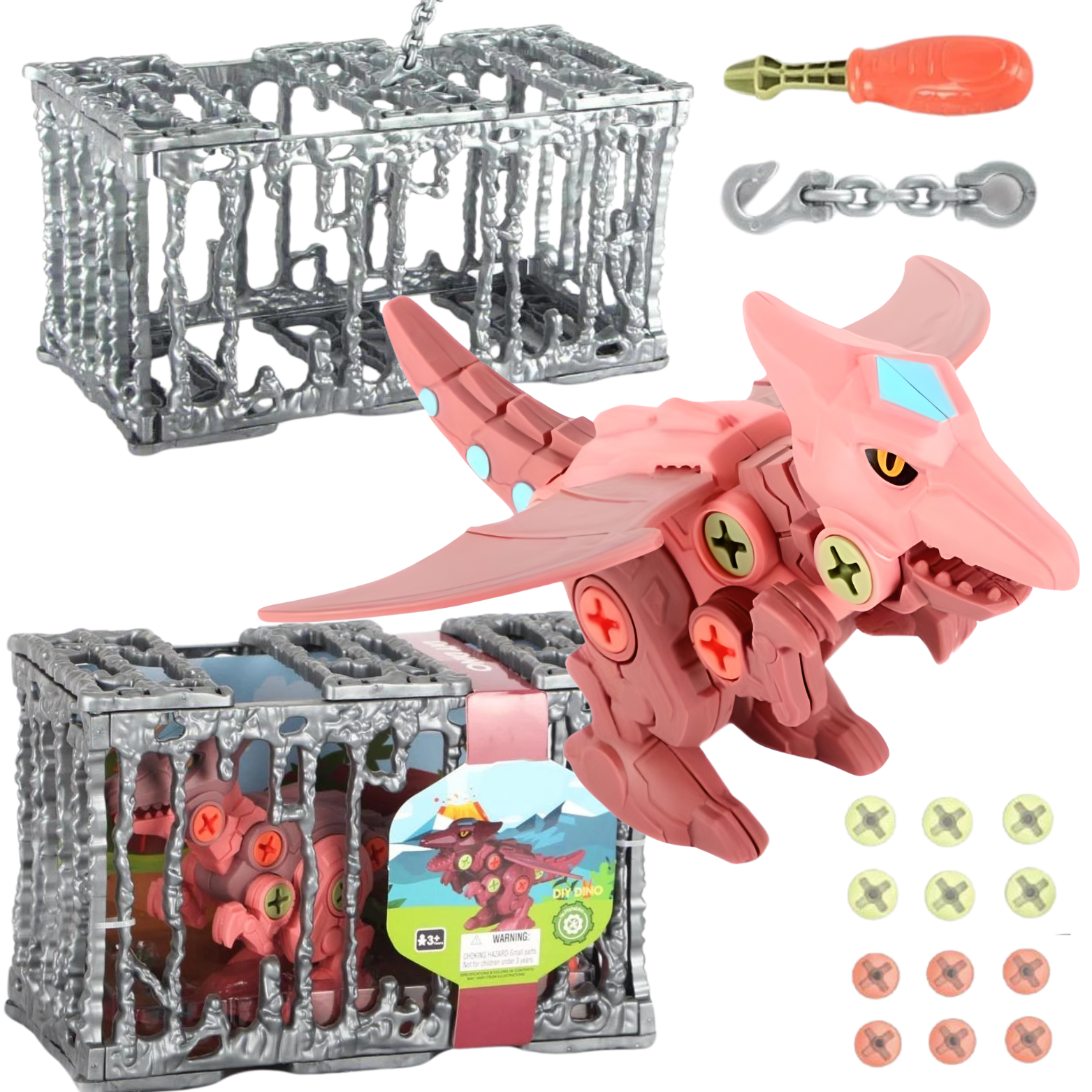 ZESTAW DINOZAUR DO SKRĘCANIA PTERODAKTYL ŚRUBOKRĘT KLATKA DO ZAWIESZENIA