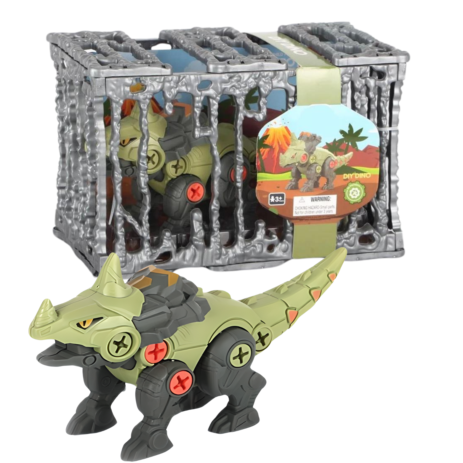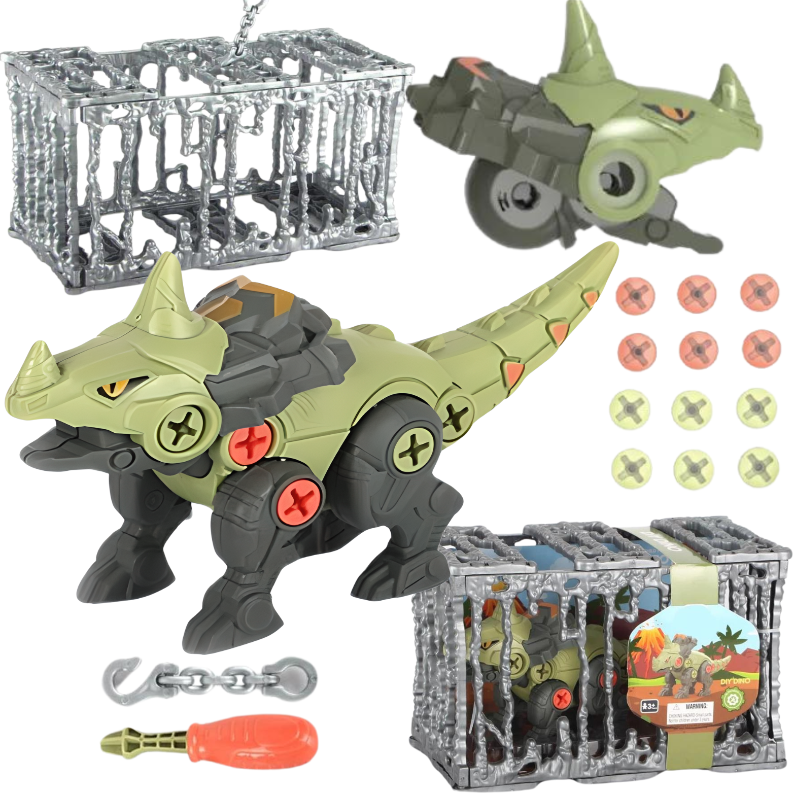 ZESTAW DINOZAUR DO SKRĘCANIA ŚRUBOKRĘT KLATKA DO ZAWIESZENIA UKŁADANKA