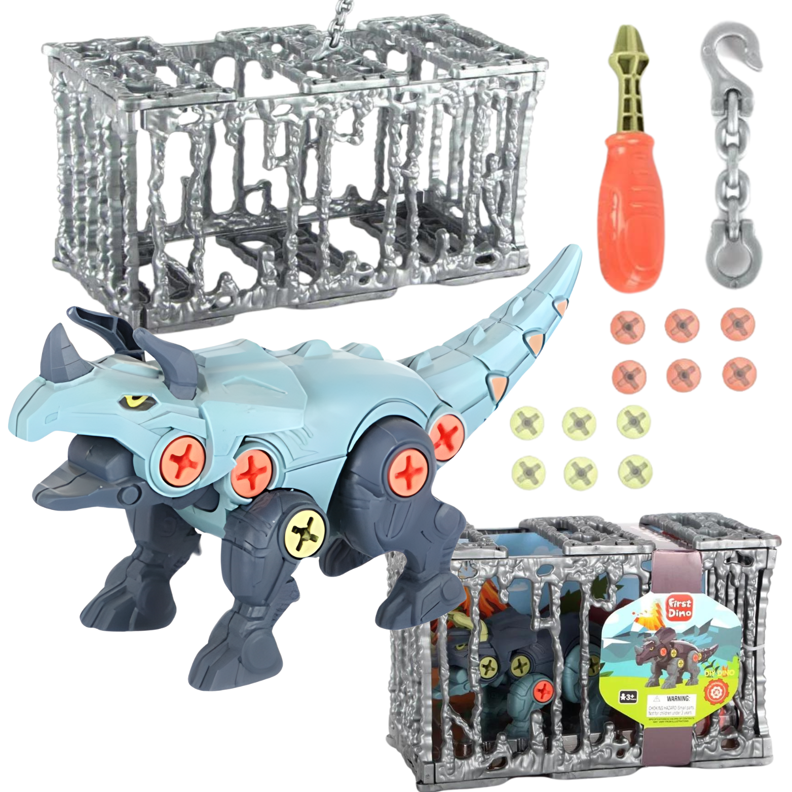 ZESTAW DINOZAUR DO SKRĘCANIA VELOCIRAPTOR ŚRUBOKRĘT KLATKA DO ZAWIESZENIA