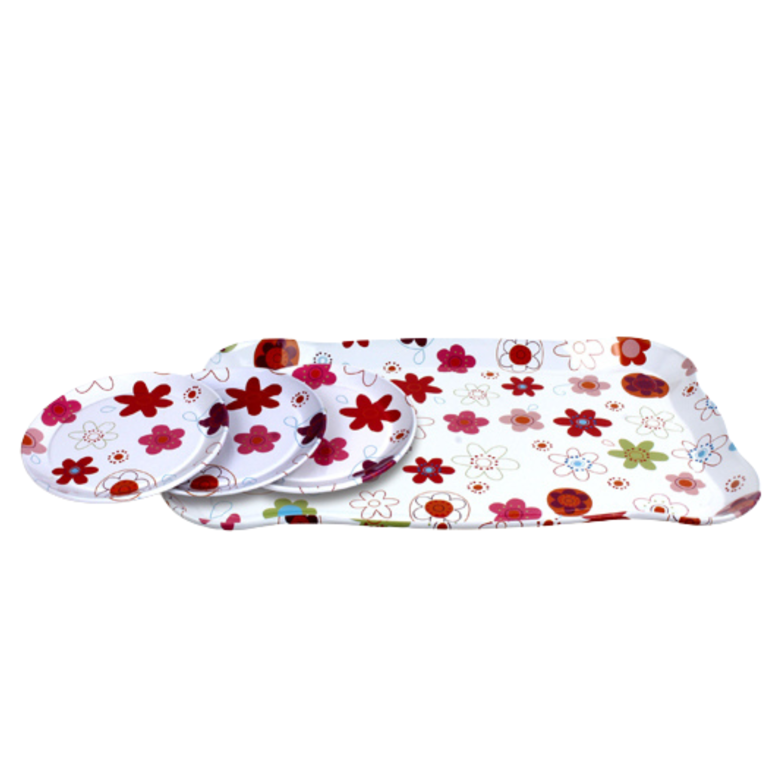ZESTAW DO HERBATY BIAŁY W KWIATY TACKA TALERZYKI FILIŻANKI ZESTAW KUCHENNY