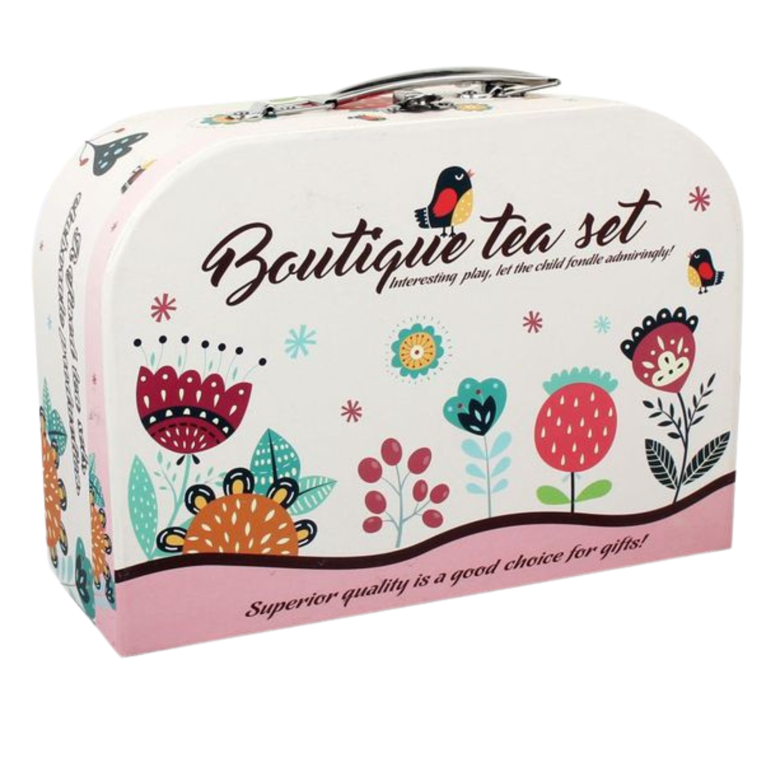 ZESTAW DO HERBATY W WALIZCE KWIATY ZESTAW KUCHENNY DZBANEK TACKA TALERZYKI