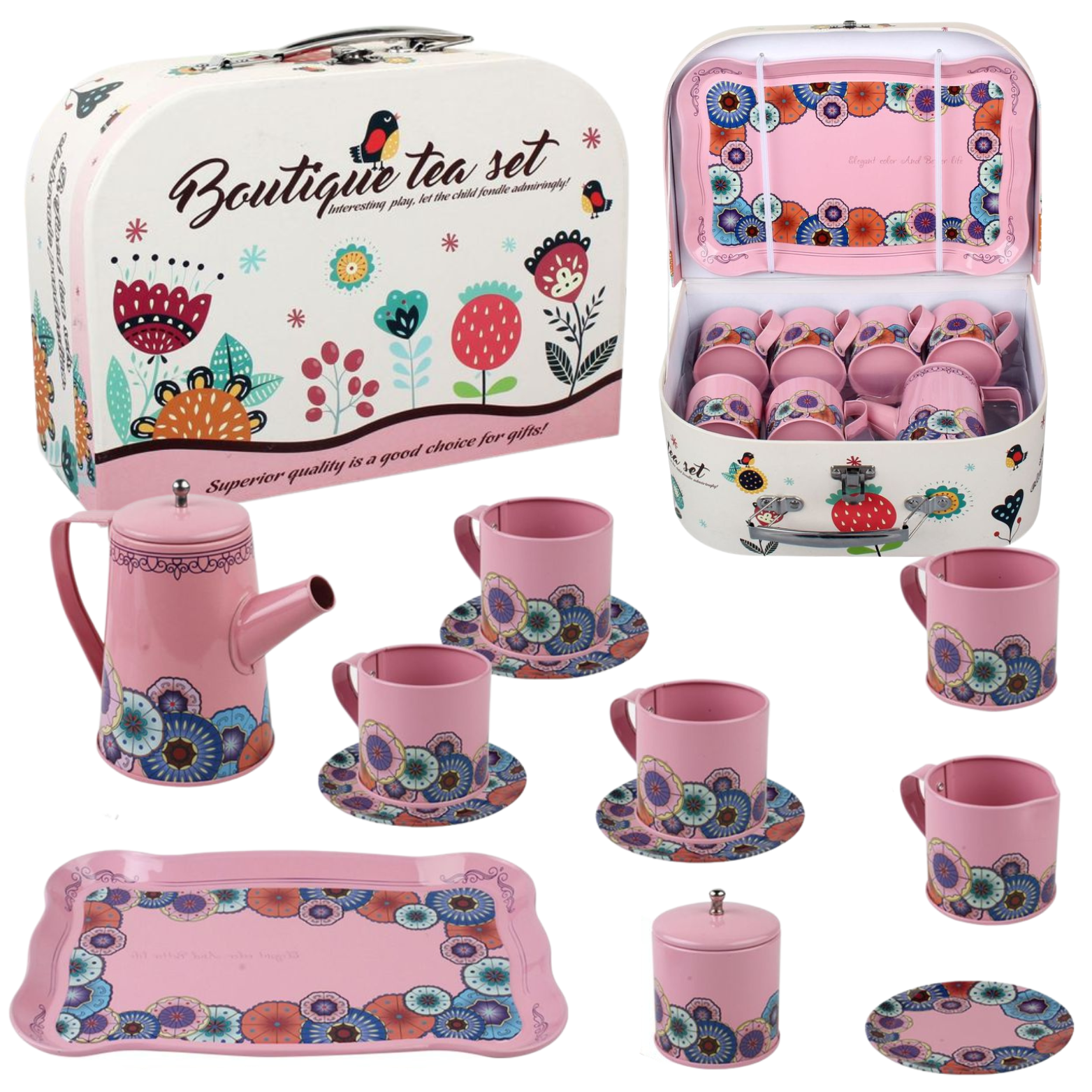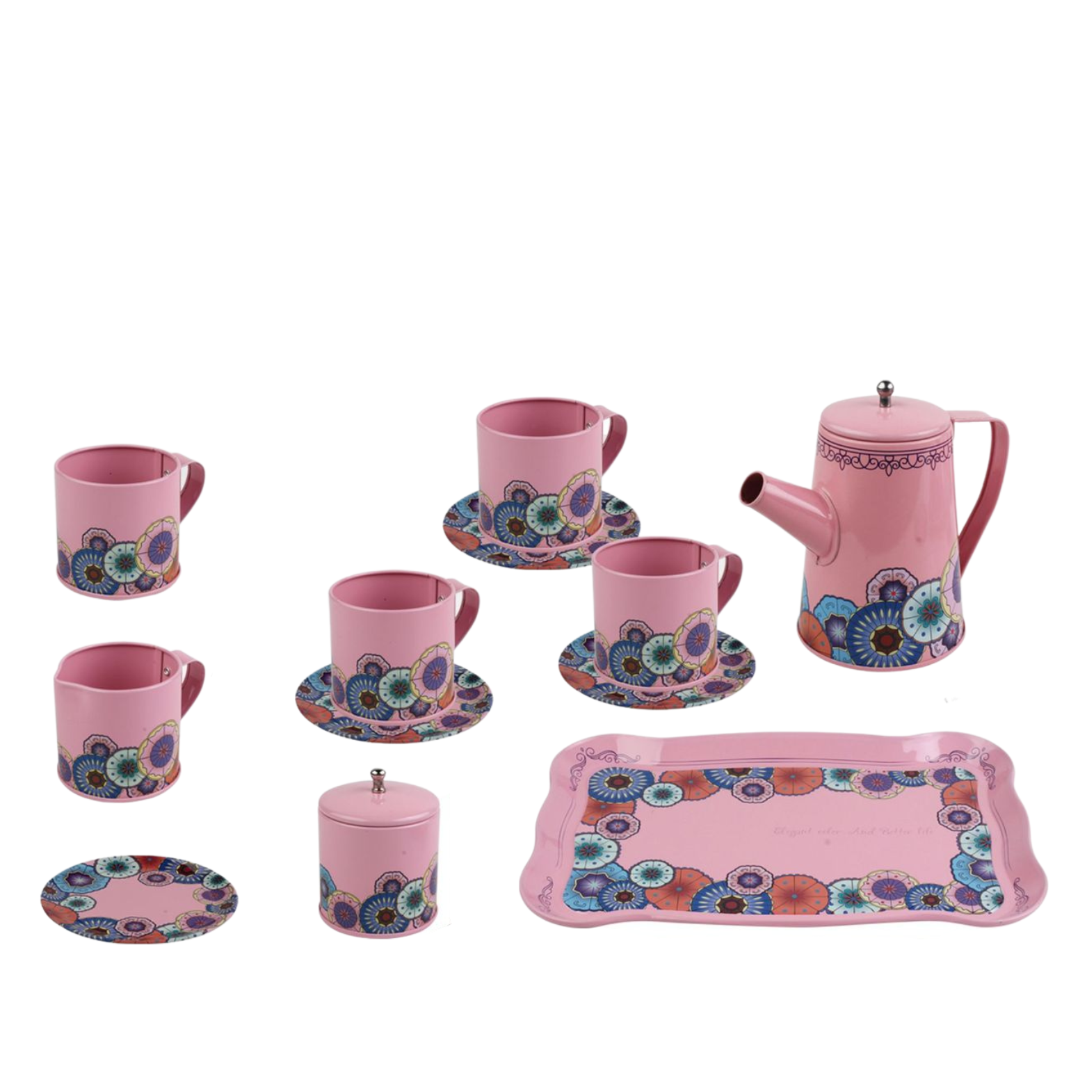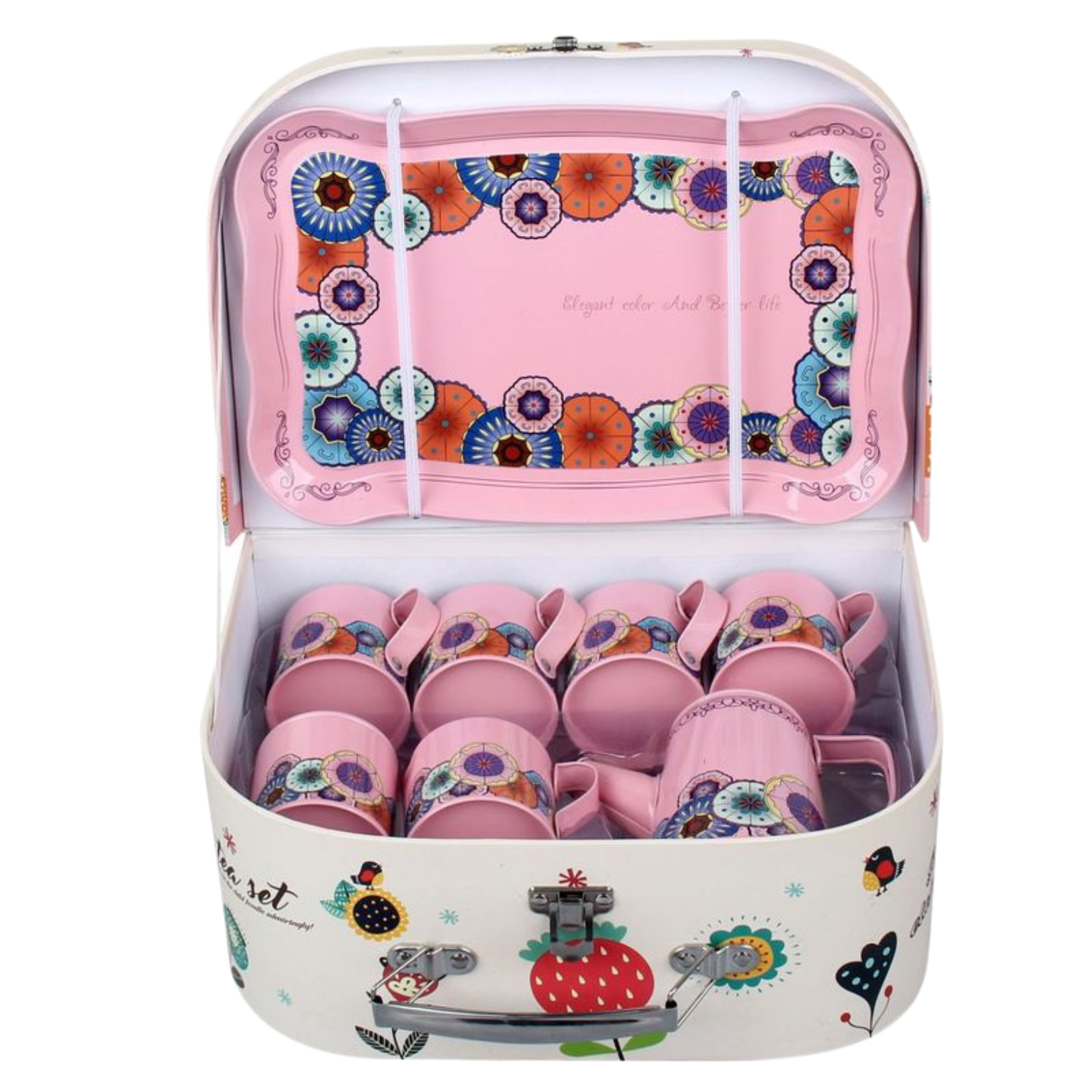 Zestaw jest wyposażony w uroczą tackę, na której można prezentować przygotowane napoje i przekąski. Tacka dodaje elegancji i autentyczności zabawie, a jednocześnie pomaga dzieciom w organizacji ich herbatkowych spotkań.
