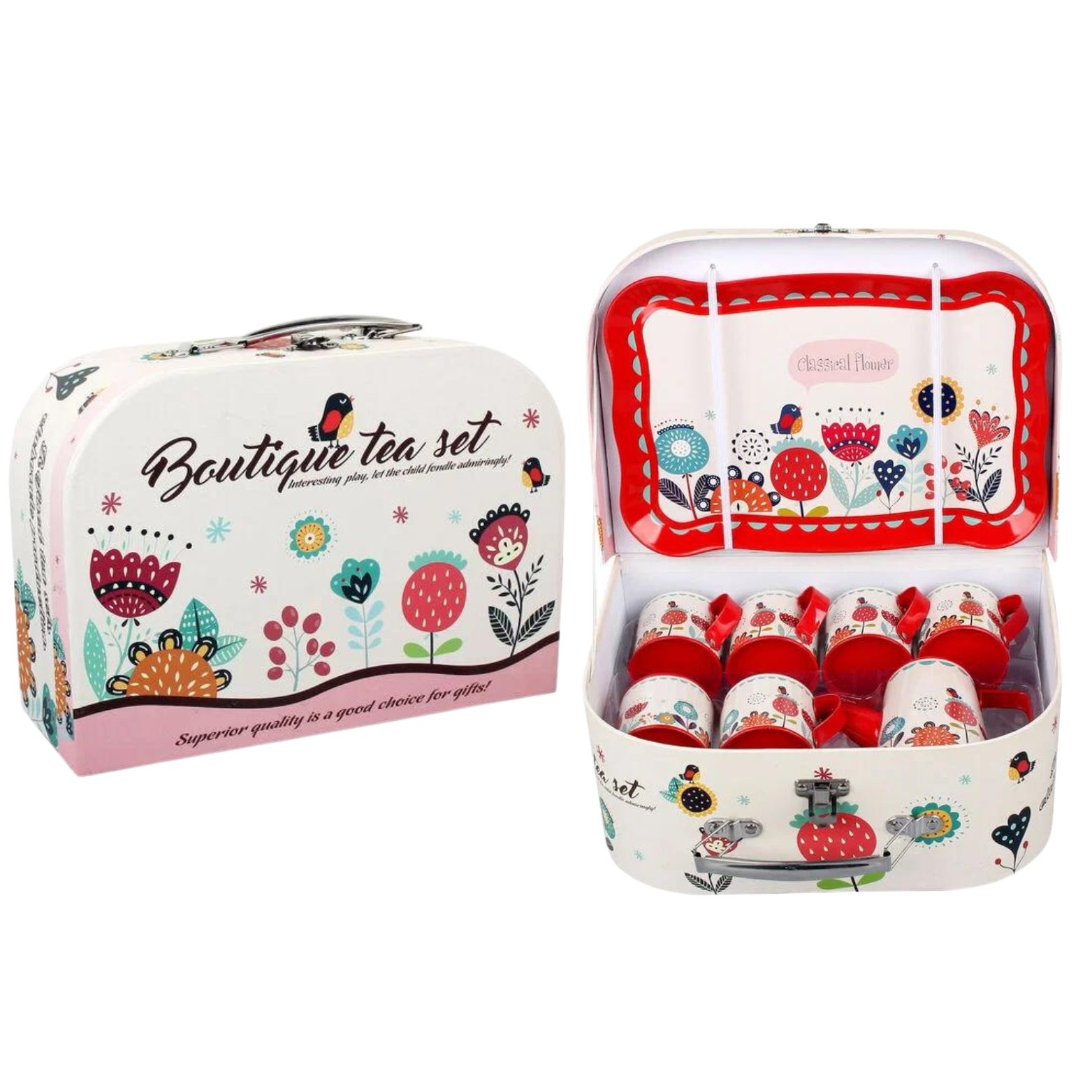 ZESTAW DO HERBATY W WALIZCE KWIATY ZESTAW KUCHENNY DZBANEK TACKA TALERZYKI