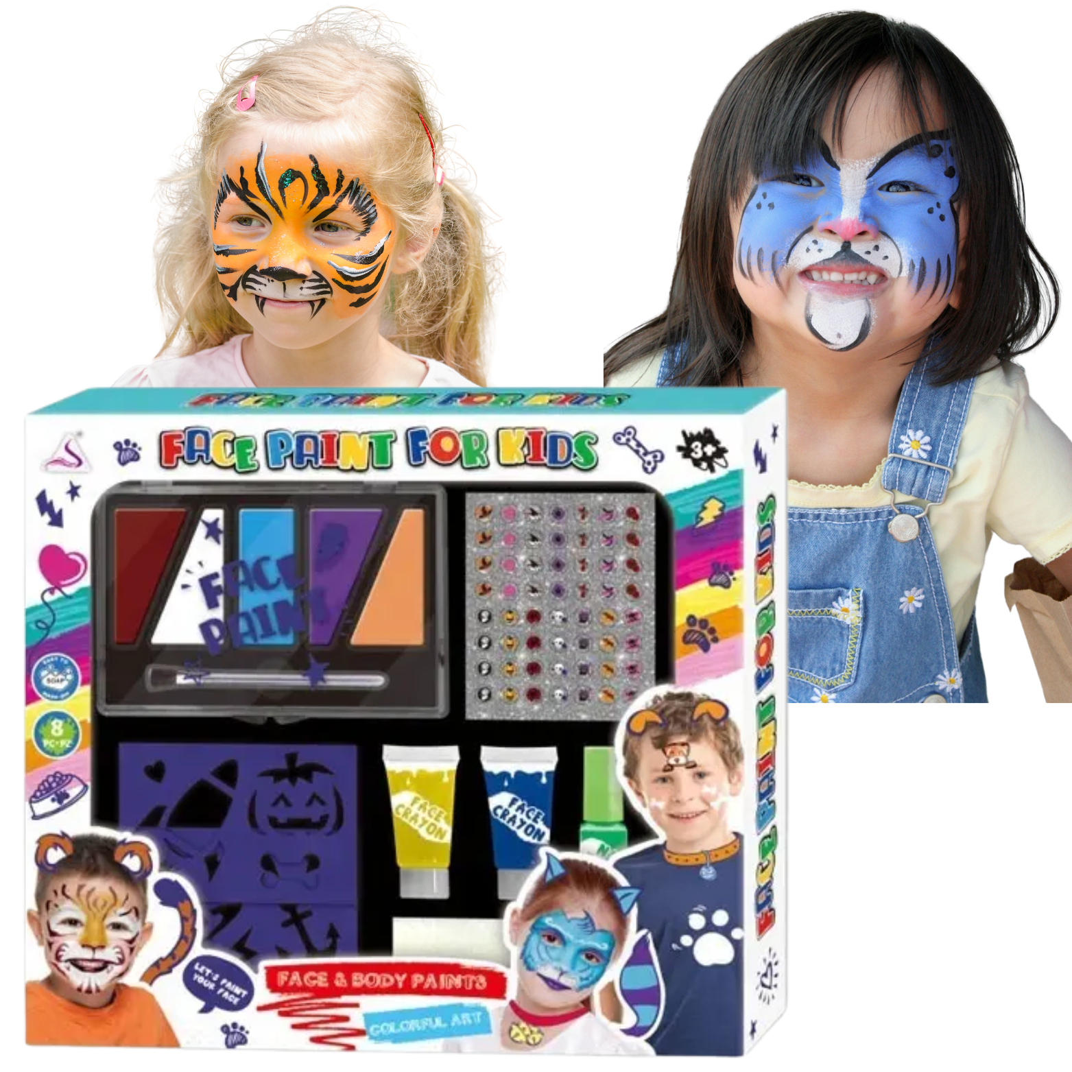 Zestaw do malowania twarzy i ciała DIY z szablonami