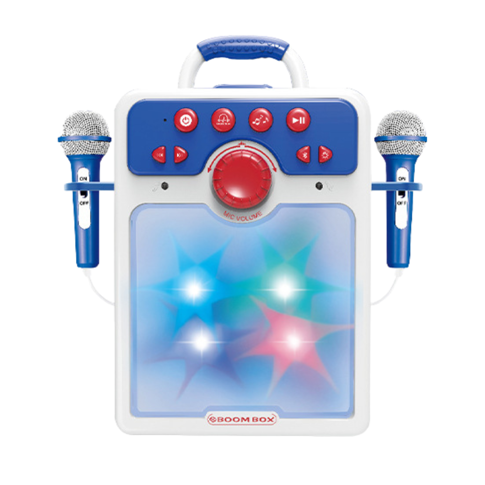Dwa mikrofony połączone z urządzeniem umożliwiają dziecku wykonywanie niesamowitych popisów samemu lub z przyjaciółmi czy rodziną. Kolorowe efekty świetlne nadadzą atmosferę, sprawiając, że każdy występ stanie się jeszcze bardziej ekscytujący.