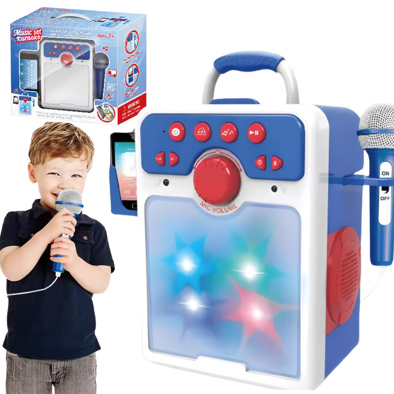 Zestaw zawiera aż 70 wgranych utworów i 12 rytmów dyskotekowych, co sprawia, że każde dziecko może stać się prawdziwą gwiazdą. Głośnik oferuje przestrzenny i czysty dźwięk, dostarczając niezapomnianych doznań muzycznych. Zintegrowane przyciski umożliwiają łatwe przełączanie, cofanie i regulację głośności utworów.