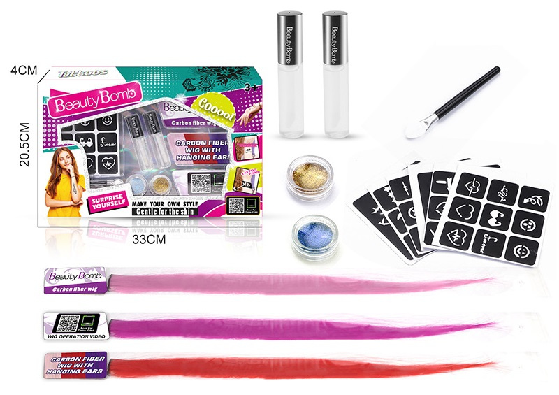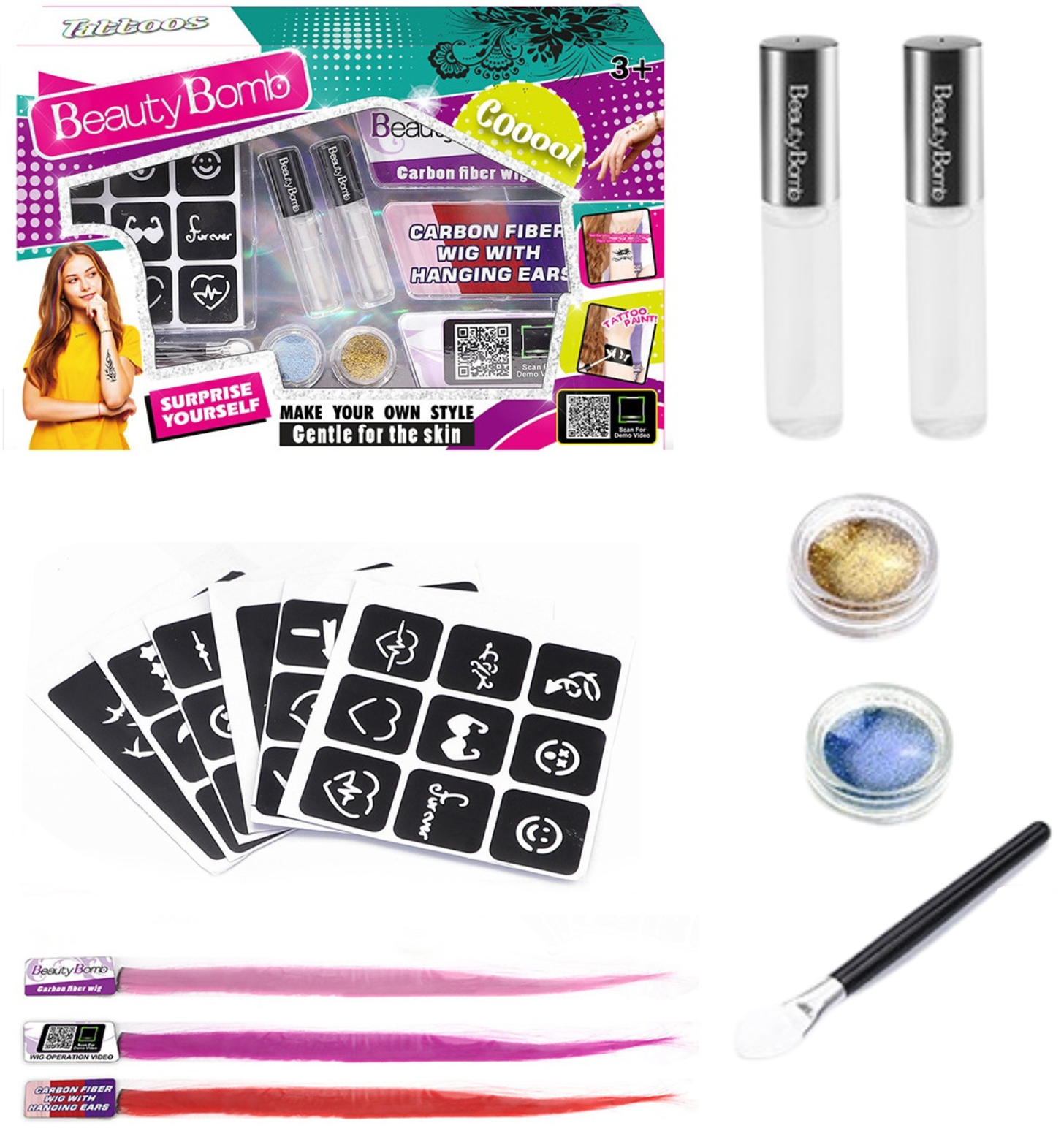Oferowany zestaw to wspaniały prezent dla każdej dziewczynki! Jest w pełni bezpieczny i nie zawiera toksycznych substancji! Jeżeli wzór tatuażu już się znudzi możemy z łatwością usunąć go za pomocą wody i mydła! Tatuaże możesz ozdobić brokatem, by zachwycały przyjaciół i rodzinę. Baw się, twórz, kreuj swoją osobowość!