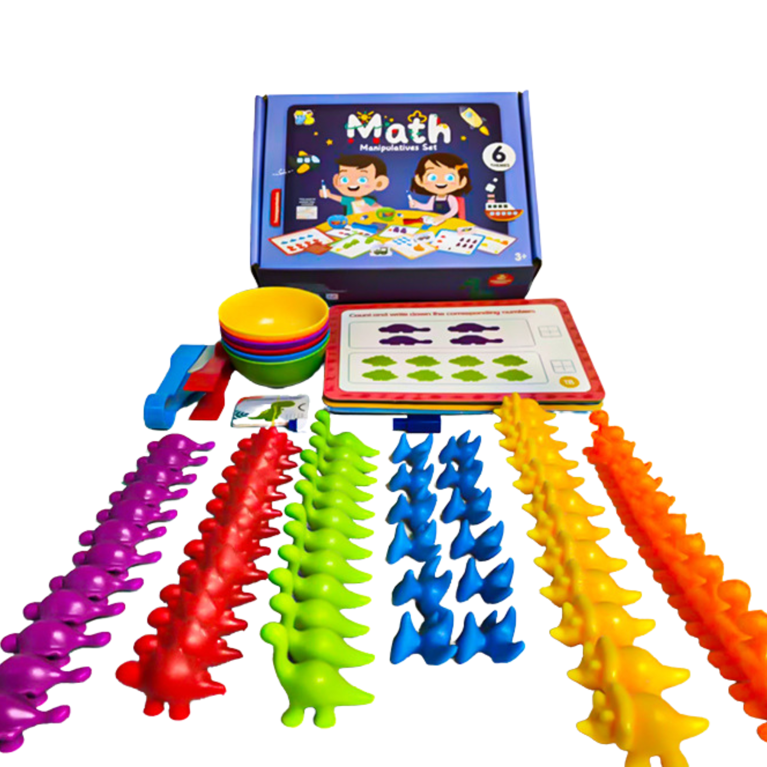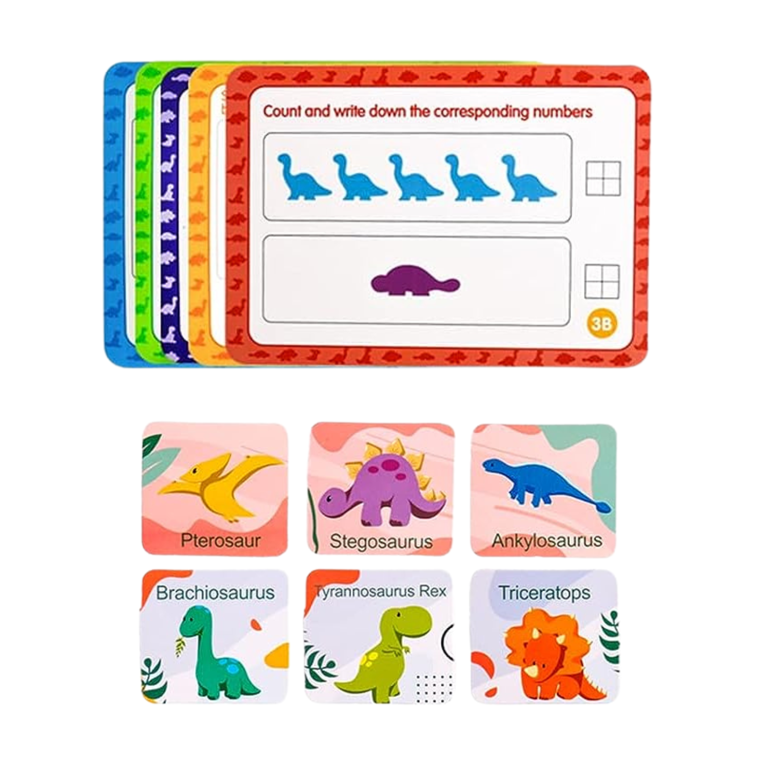Zestaw zachęca dzieci do nauki w sposób interaktywny. Wciągający motyw dinozaurów przyciąga uwagę maluchów, a jednocześnie rozwija ich zdolności matematyczne i rozpoznawanie kolorów.