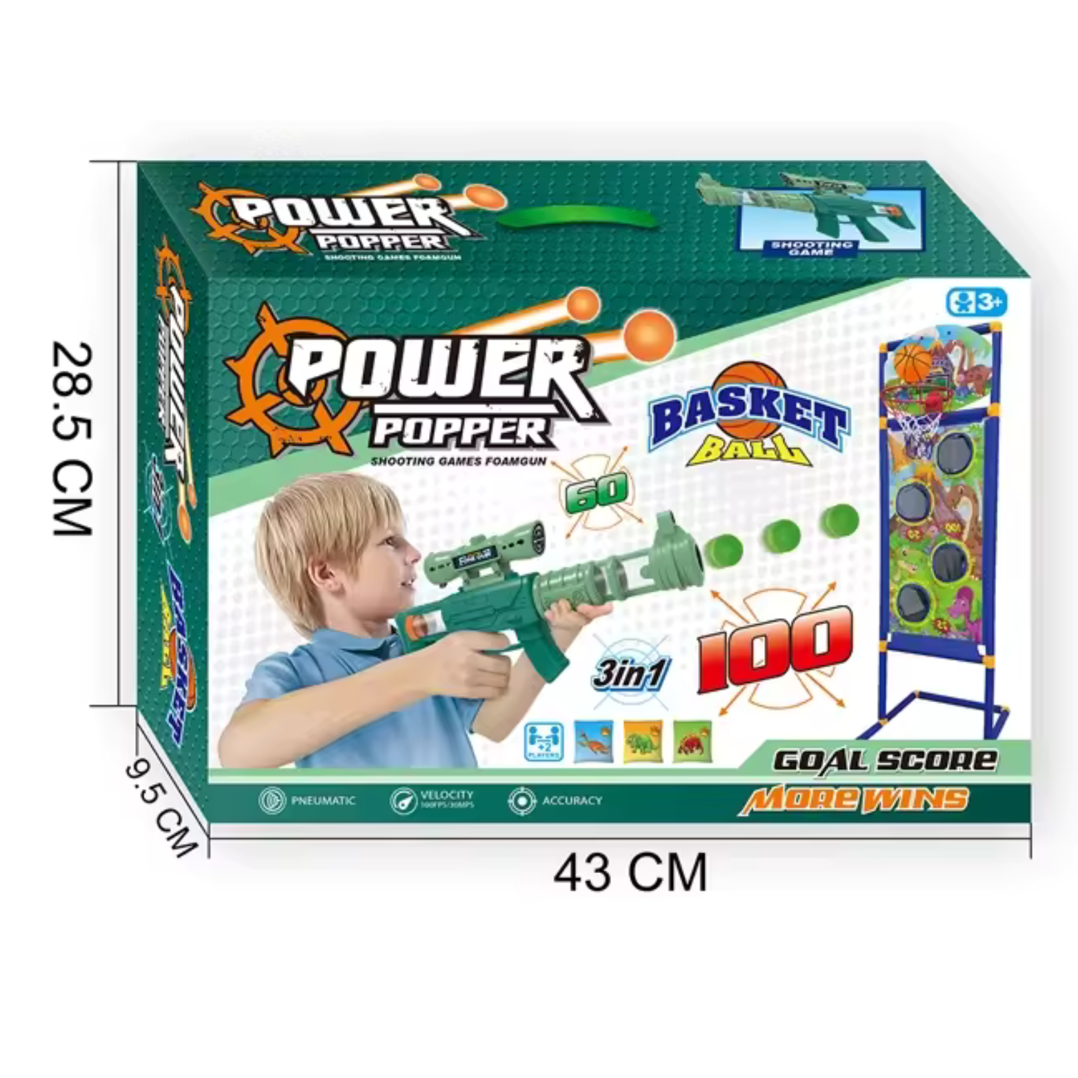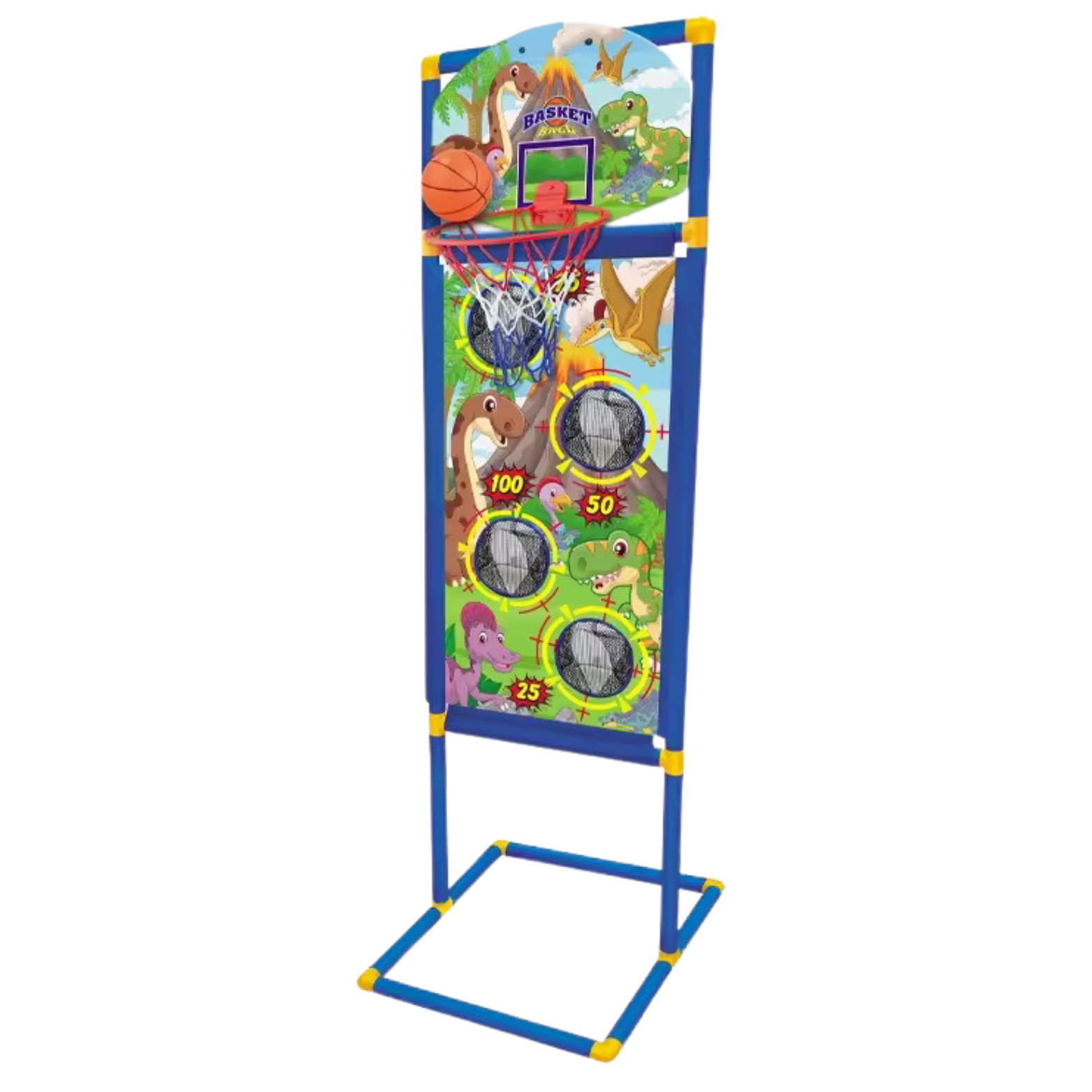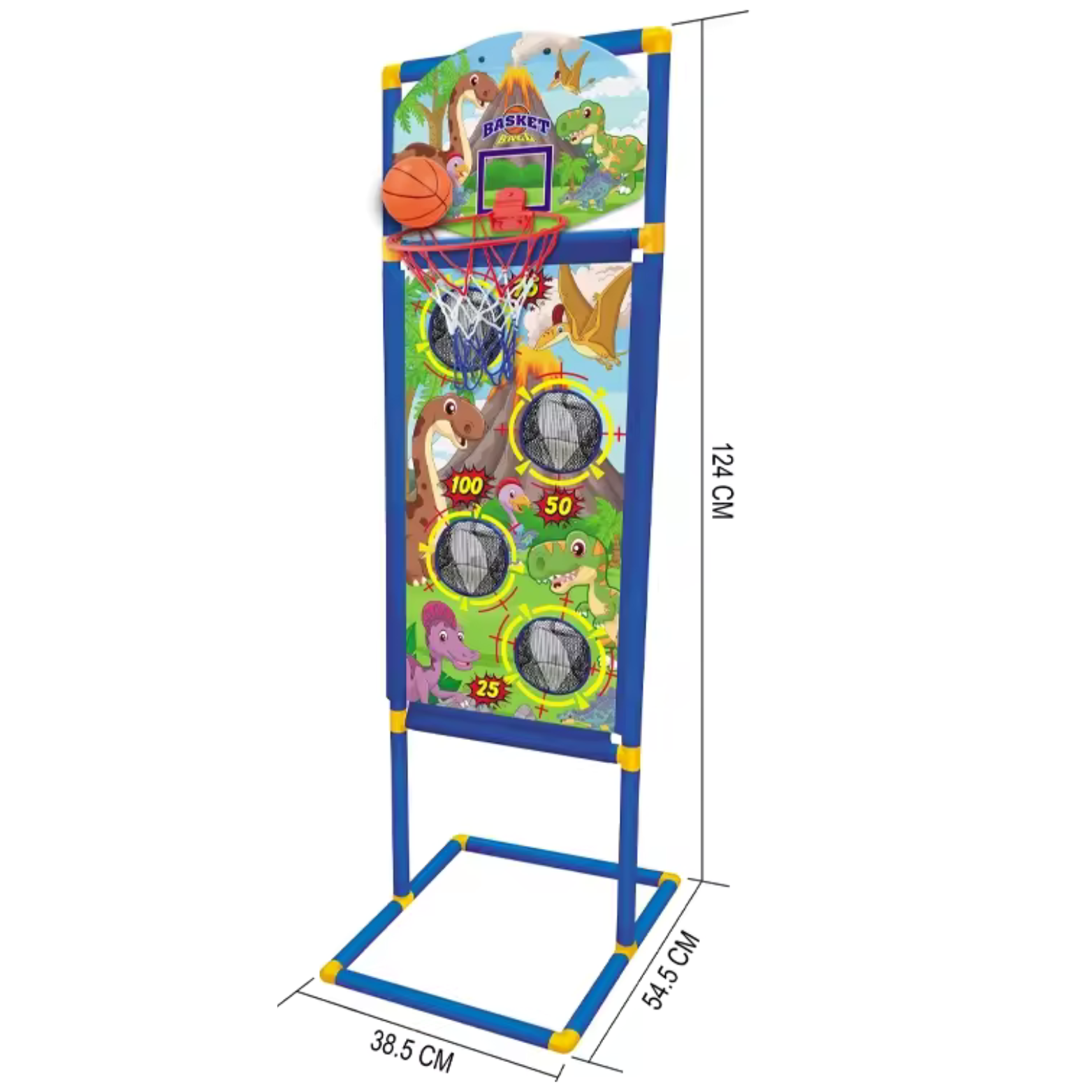 Nasz stojak 3w1 to niezwykłe gry, które zapewnią Twojemu dziecku godziny zabawy i aktywności. Zaprojektowana z myślą o różnorodnych formach rozrywki, ta wszechstronna ścianka oferuje trzy wspaniałe gry, które zachęcają dzieci do ruchu i rozwijania swoich umiejętności. Zestaw zawiera 3 sportowe gry z motywem dinozaurów, które urozmaicą zabawę na długie godziny. Gra w koszykówkę i trafianie woreczkami angażuje dzieci do aktywnego ruchu, co wpływa korzystnie na ich rozwój fizyczny i koordynację ruchową. Punkty zdobywane podczas gry mogą stanowić doskonałe wyzwanie dla dzieci oraz zachęcają do zdrowej rywalizacji, motywując je do doskonałości.
