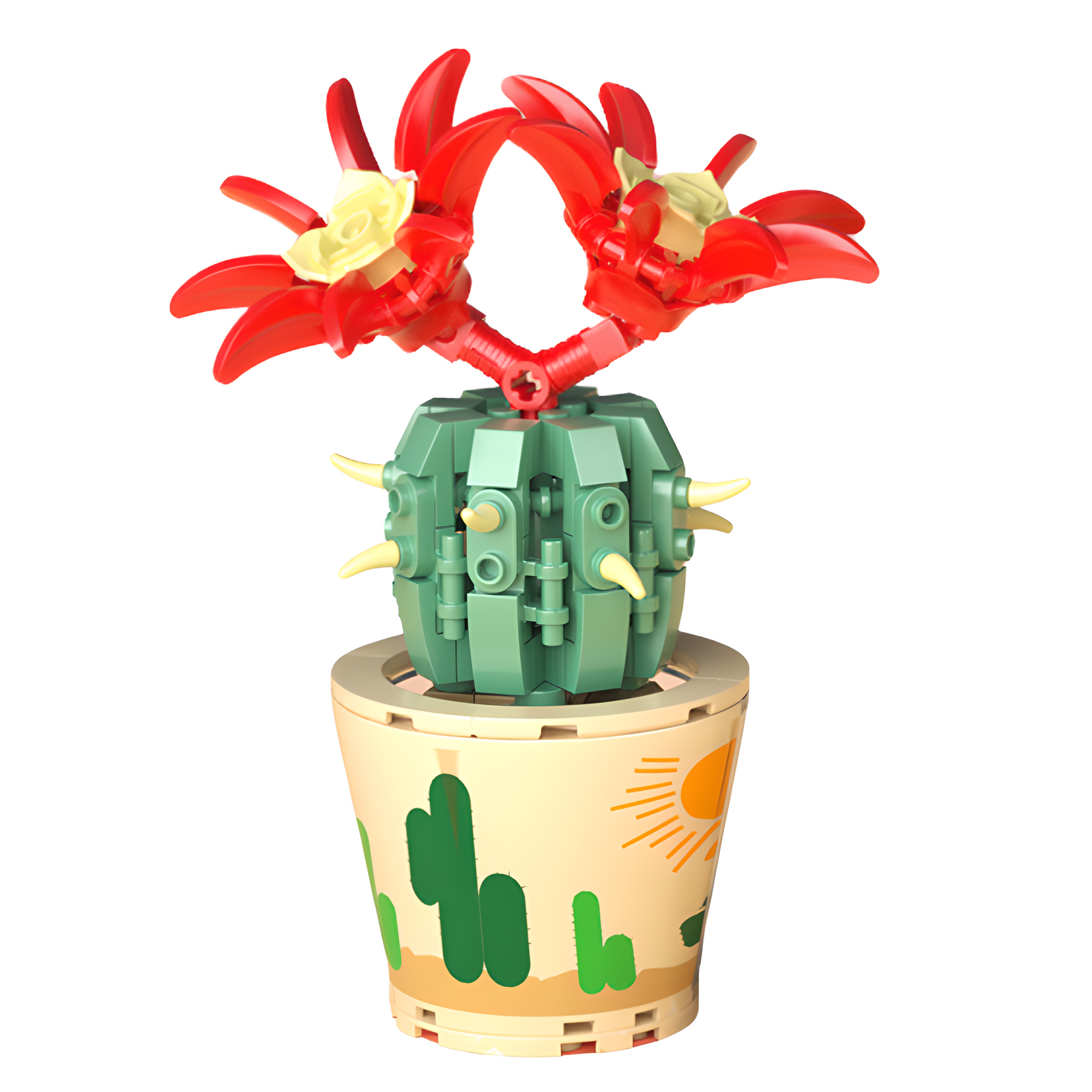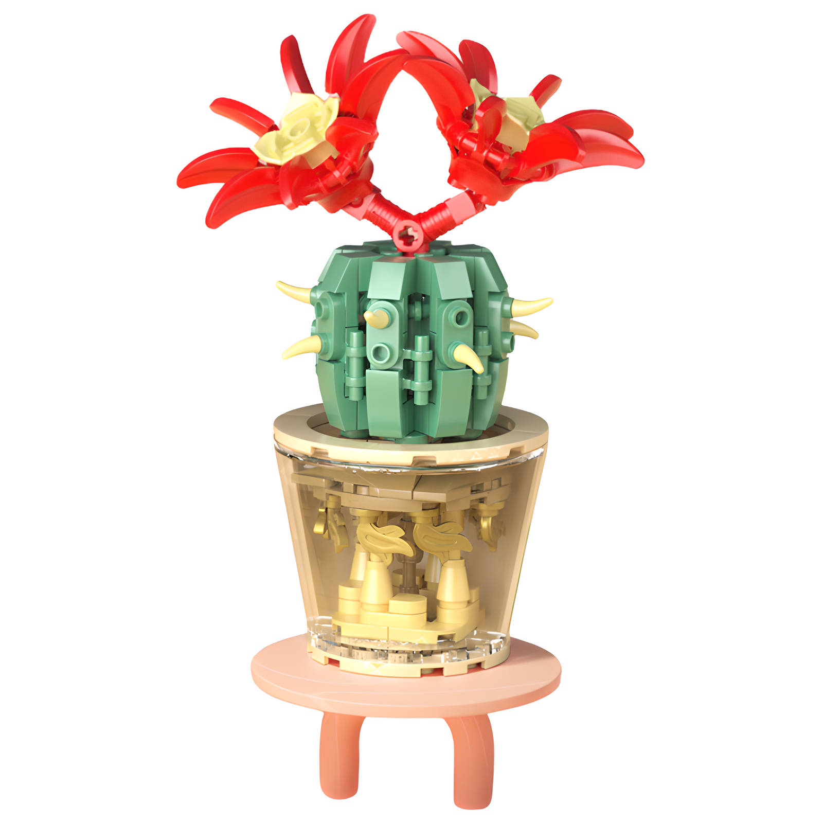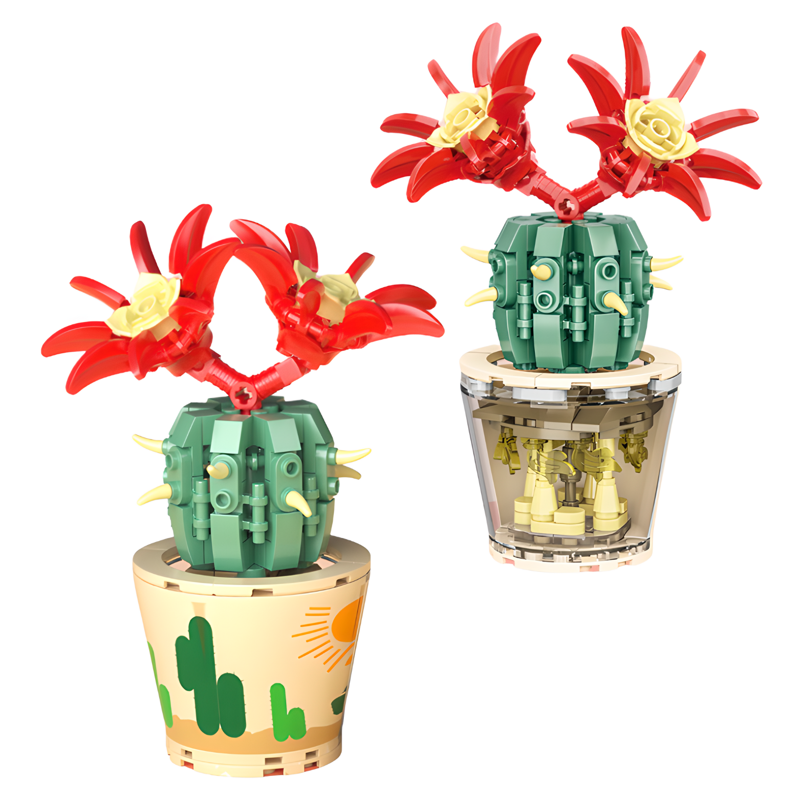 Doniczka z klocków jest dwustronna, co dodaje atrakcyjności całemu zestawowi. Jedna część doniczki posiada rysunek kaktusów, natomiast z drugiej strony mamy efekt 3D. W środku doniczki znajduje się motyw karuzeli. Jest to fascynujący dodatek podczas układania klocków, a także dzięki temu zestaw stanie się niesamowitą i ciekawą ozdobą w pokoju.