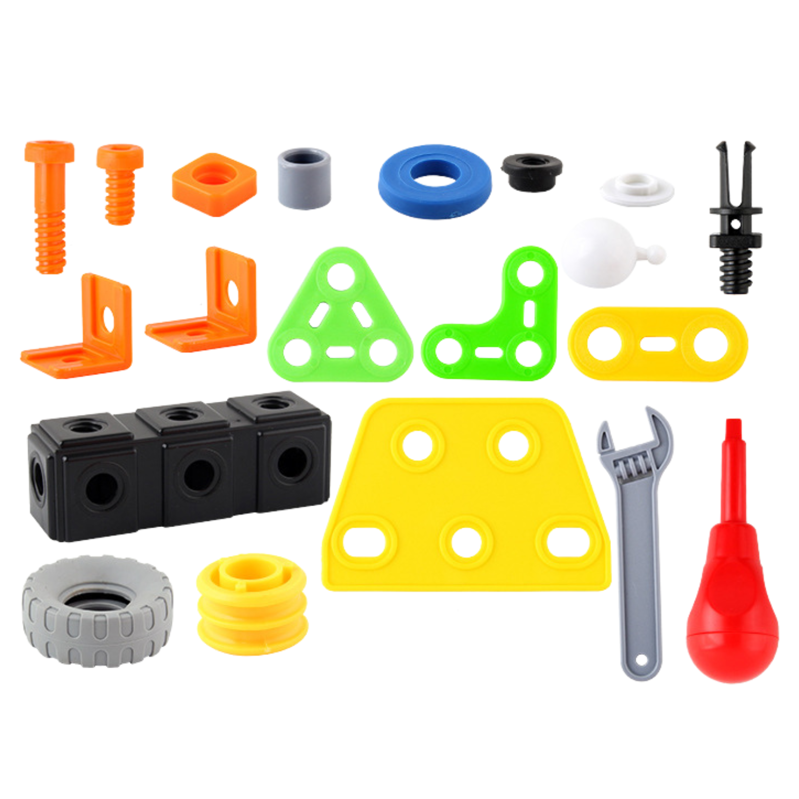 Zestaw cechuje się kolorowymi elementami, elastycznymi częściami, rozwojem w zakresie matematyki, plastyki, nauk ścisłych, a także inżynierii.