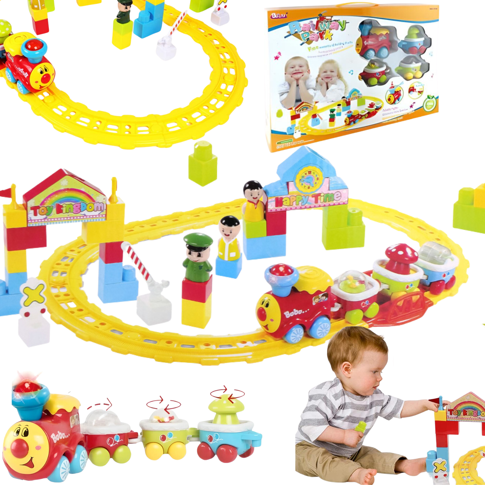 Kolejka dla dzieci to wyjątkowa zabawka, która zapewnia maluchom niezapomniane przygody na torach kolejowych. Zestaw składa się z kolorowej lokomotywy oraz trzech wagoników, które zapewniają wiele możliwości zabawy i odkrywania. Do zestawu są dołączone inne elementy, takie jak: szlaban, most, znaki drogowe, akcesoria do składania torów, które można łatwo złożyć! Dodatkowo podczas jazdy kolejką usłyszmy różne melodie oraz zobaczymy efekty świetlne!