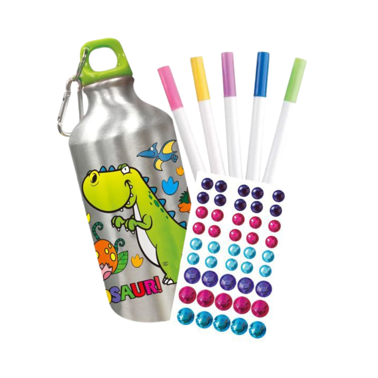 - akcesoria do ozdabiania: Zestaw zawiera akcesoria, takie jak kolorowe pisaki i naklejki z diamentami, niezbędne do tworzenia indywidualnych wzorów na bidonie. Dzięki nim, dzieci mogą wyrazić swoją kreatywność i stworzyć unikalną butelkę, którą z dumą będą nosić,