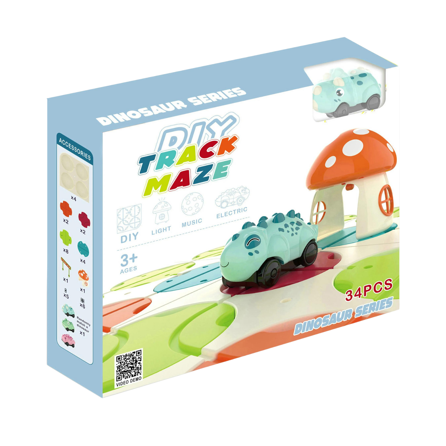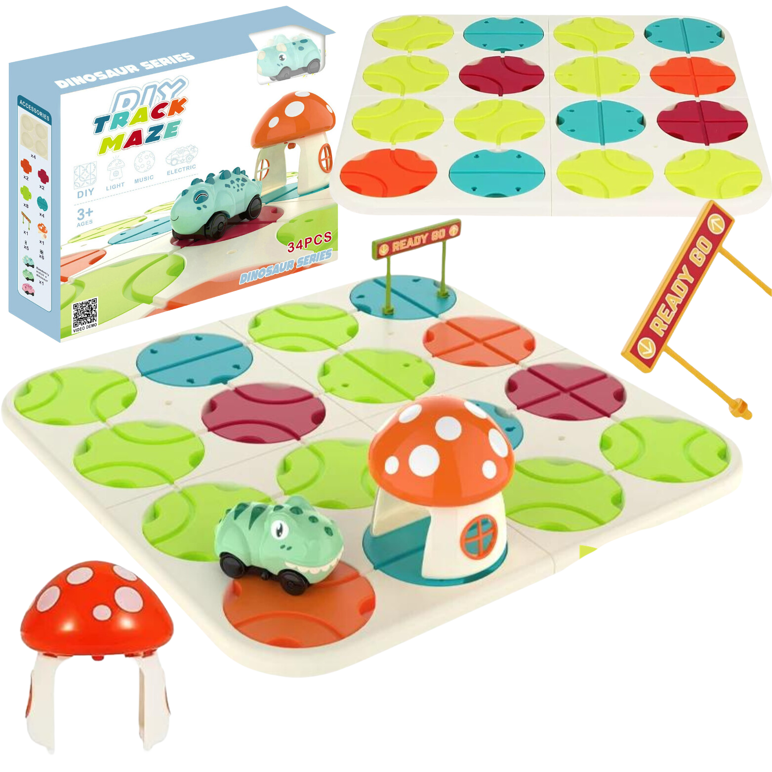 Zestaw Labirynt Drogowy Budowanie Trasy Dinozaur Grzybek Światło Dźwięk