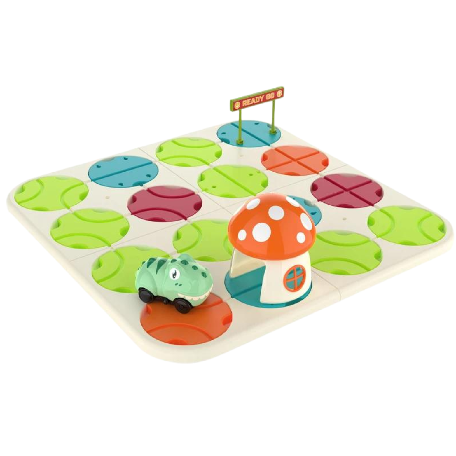 W tym zestawie dzieci konstruują własne trasy za pomocą różnorodnych klocków. Dolna płyta to podstawa całego toru. Celem gry jest poprowadzenie pojazdu z punktu startowego do domku, wykorzystując wyłącznie zbudowaną trasę. Konstrukcja drogi to wyzwania, które pobudzi logiczne myślenie i rozwijanie umiejętności rozwiązywania problemów.