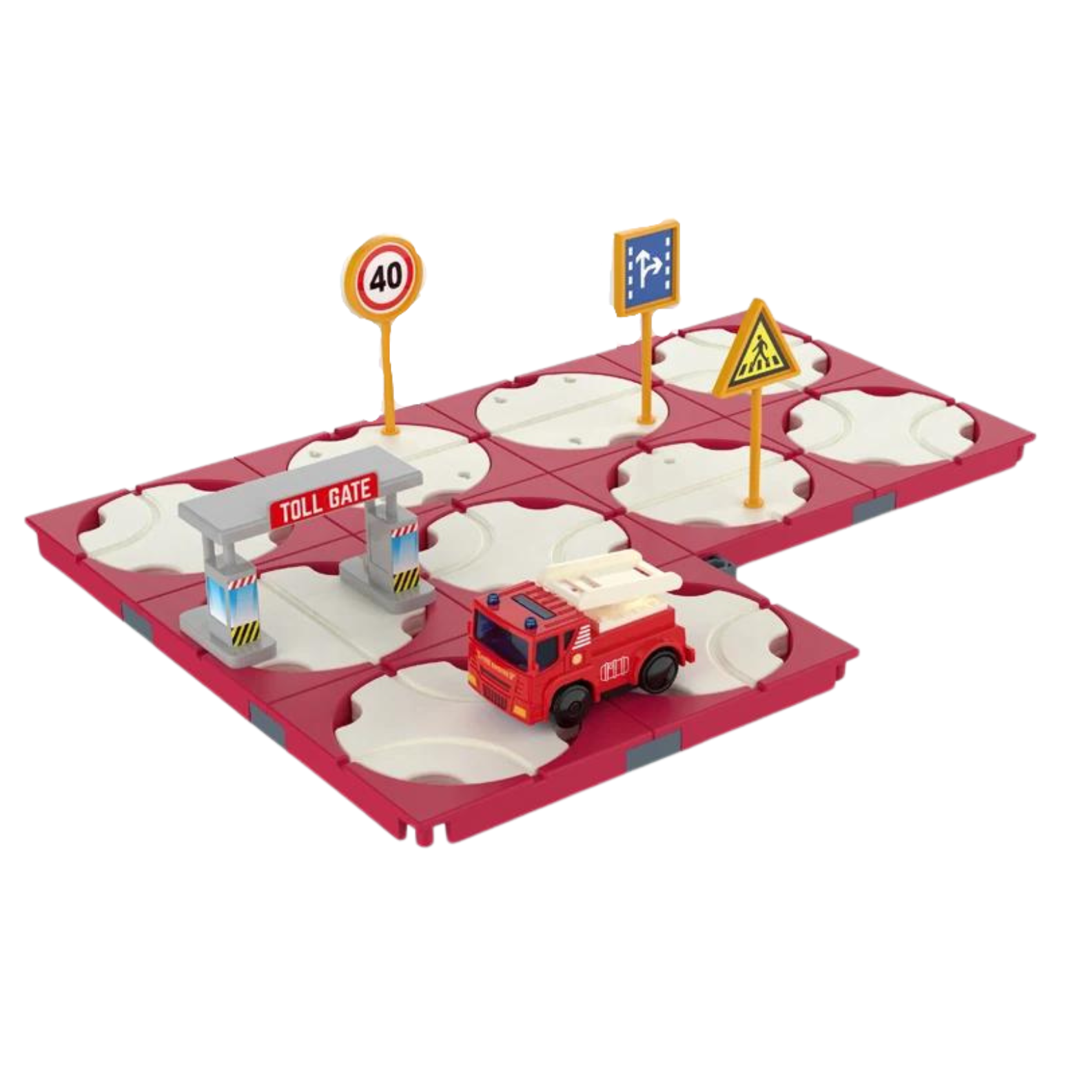 W tym zestawie dzieci konstruują własne trasy za pomocą różnorodnych klocków. Dolna płyta to podstawa całego toru. Celem gry jest ułożenie torów tak, aby pojazd mógł bez problemu objechać ułożoną trasę. Dzięki uniwersalności klocków, dzieci mogą układać tory według własnego pomysłu. Konstrukcja drogi to wyzwania, które pobudzi logiczne myślenie i rozwijanie umiejętności rozwiązywania problemów.