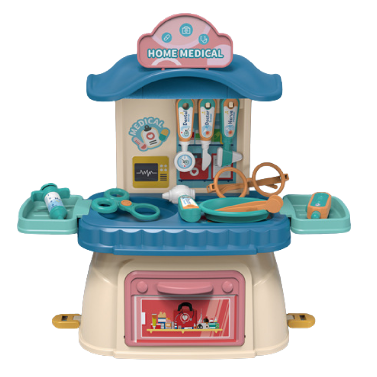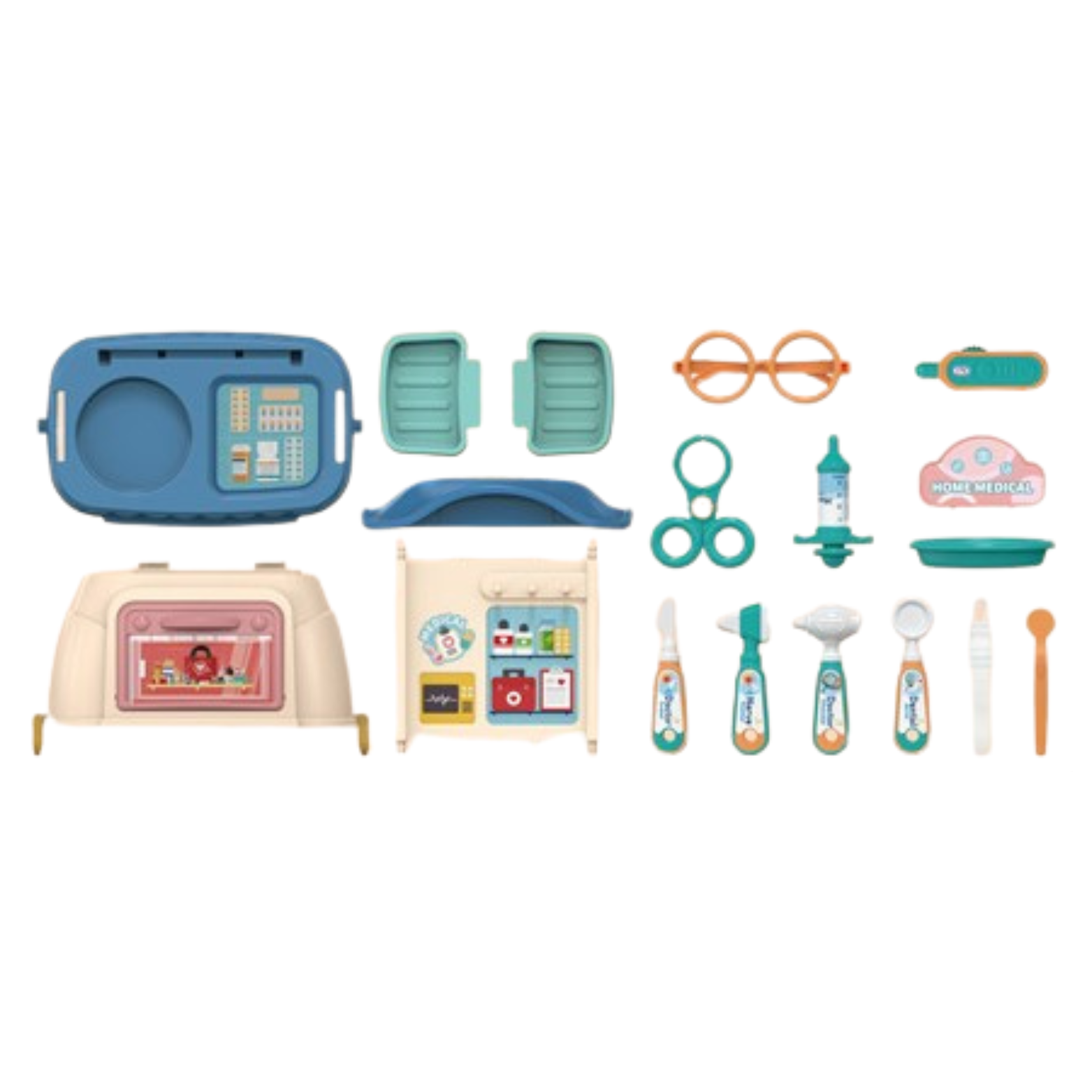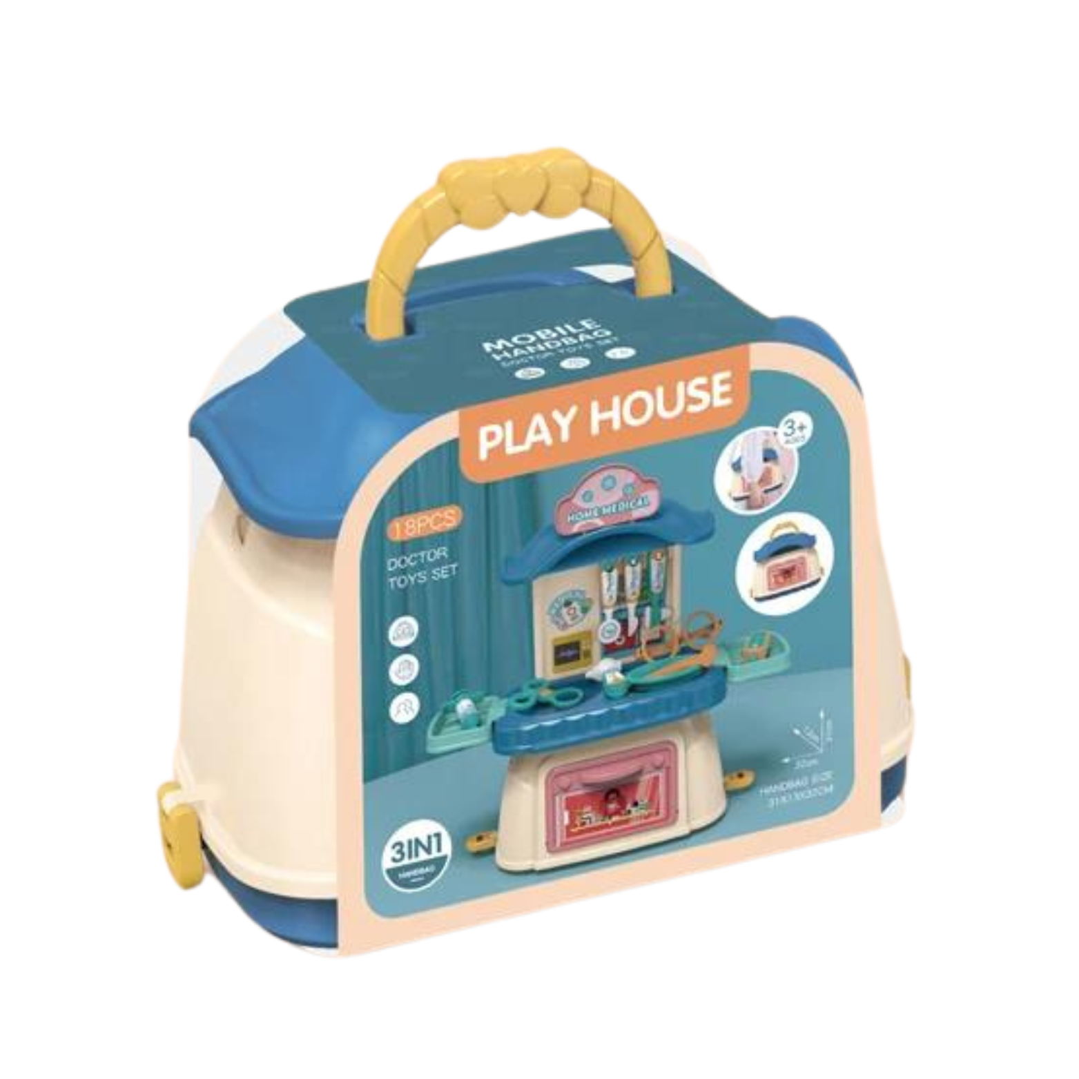 Zestaw zawiera różnorodne akcesoria lekarskie, takie jak termometr, strzykawka, pęseta, nożyce i inne. To kompleksowy zestaw, który pozwoli dzieciom eksplorować różne aspekty medycyny. Całość zamknięta jest w przenośnej torbie, co ułatwia przechowywanie i przenoszenia wszystkich akcesoriów w jednym miejscu. Dziecko może zabrać swój zestaw wszędzie, gdzie tylko zechce.