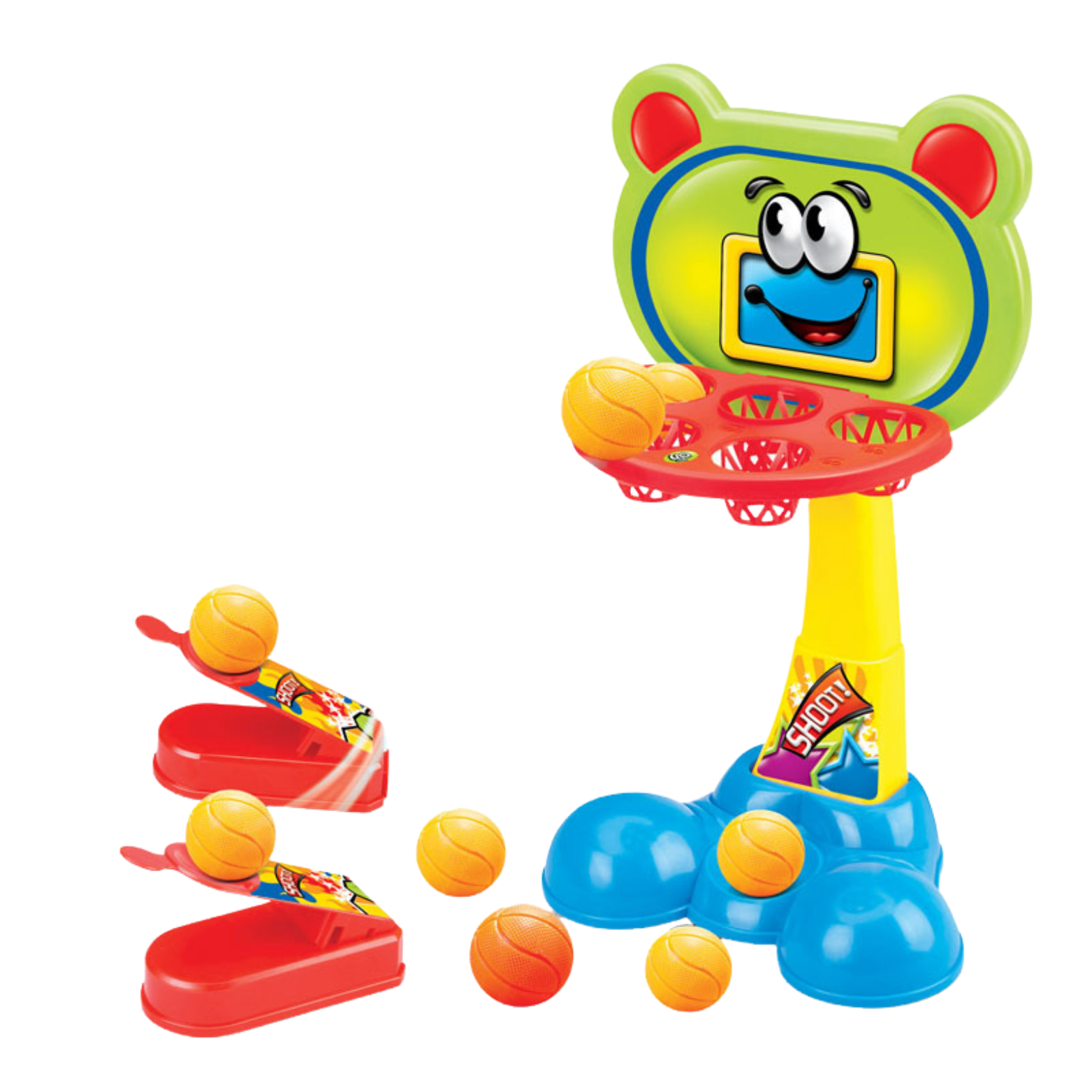 Doskonała zabawka dla najmłodszych, która zapewnia godziny radości i aktywności. Ten zestaw gier zręcznościowych składa się z dwóch tablic do koszykówki i wyrzutni o różnym stopniu trudności, zapewniając dzieciom różnorodność i wyzwanie. Pierwsza tablica wyposażona jest w pojedynczą obręcz, która wymaga precyzji i zręczności w celowaniu, aby strzelić i trafić piłką do kosza. Druga tablica posiada pięć obręczy, co czyni ją łatwiejszą. Ta tablica pozwala na większą elastyczność i zachęca do współzawodnictwa, gdy dzieci rywalizują ze sobą, próbując trafić piłkę do różnych obręczy. W zestawie znajduje się również wyrzutnia, która umożliwia dzieciom strzelanie piłkami do koszykówki, pomagając im w doskonaleniu umiejętności celowania i rzucania. Dodatkowo, zestaw zawiera kilka piłek, dzięki czemu zabawa może trwać dłużej.