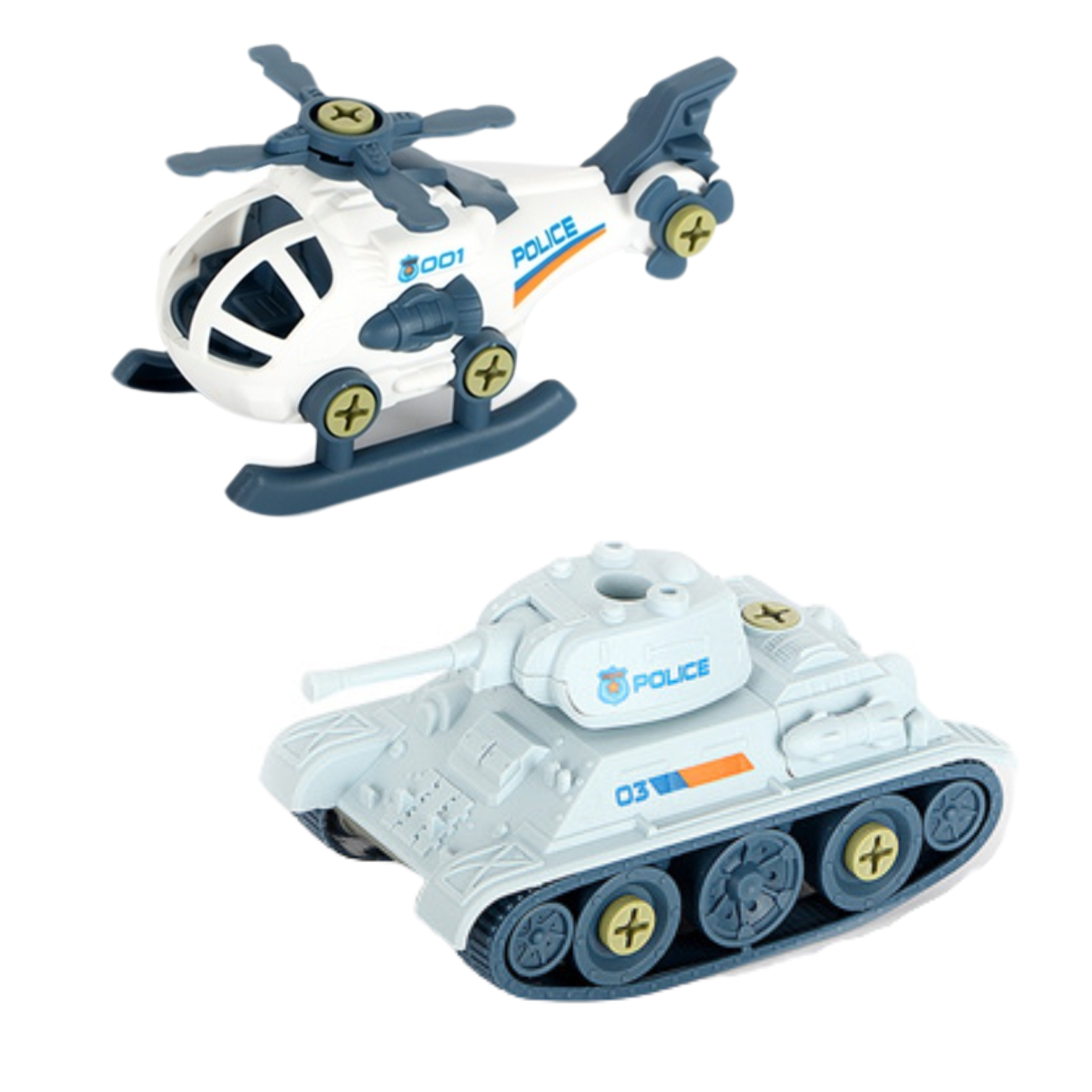 ZESTAW SAMOCHÓD DO MONTAŻU Z PRZYCZEPĄ CZOŁG HELIKOPTER WIERTARKA ŚRUBOKRĘT