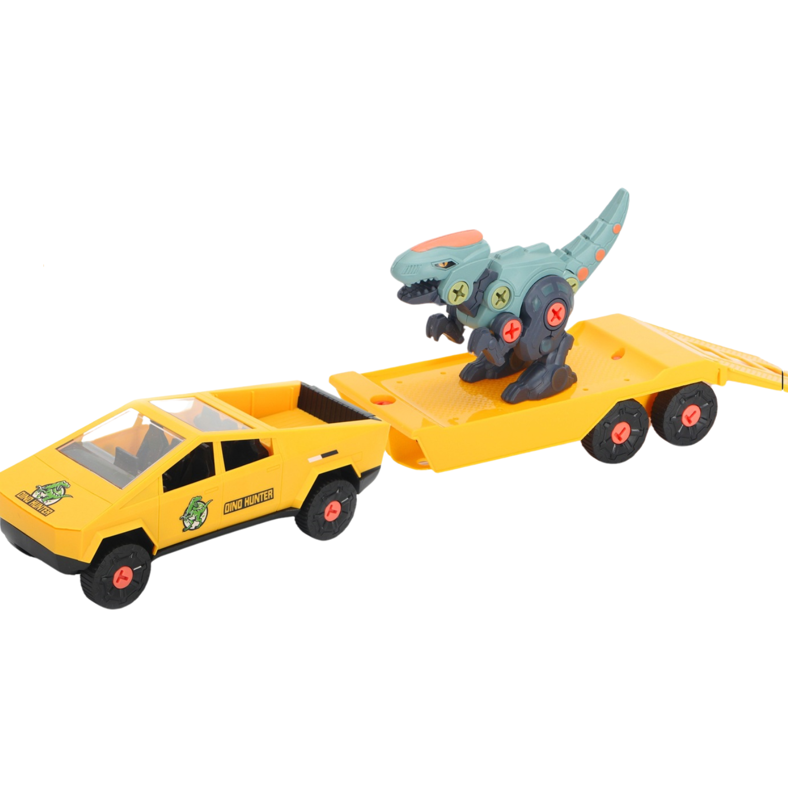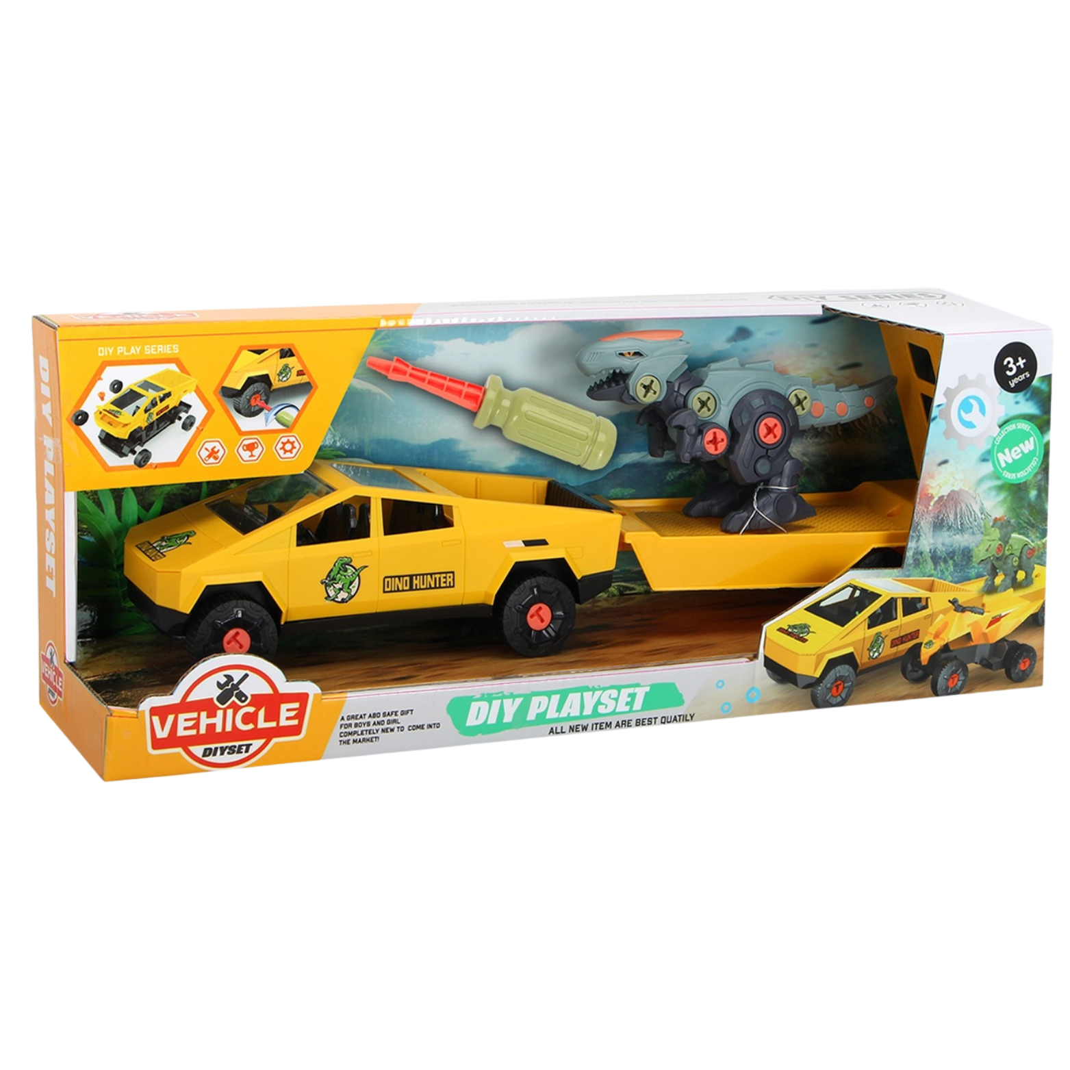 ZESTAW SAMOCHÓD Z DINOZAUREM DO MONTAŻU I DEMONTAŻU PRZYCZEPA ŚRUBOKRĘT