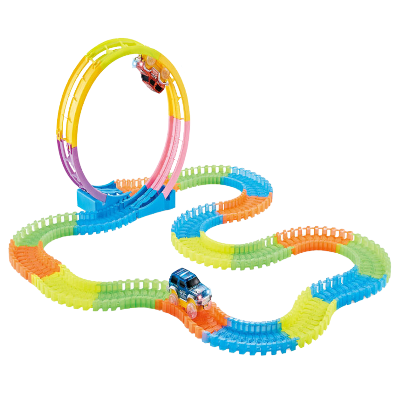 • Solidna konstrukcja: tor wyścigowy został wykonany z trwałych i bezpiecznych materiałów, które zapewniają stabilność i bezpieczeństwo podczas zabawy.