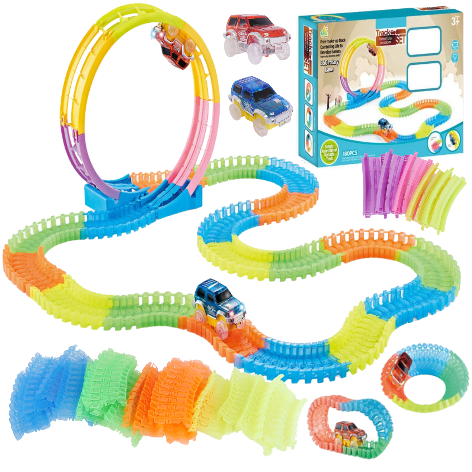 Zestaw Tor Wyścigowy Kolorowy Pętla Z Samochodzikami Prezent Duży 180 ele