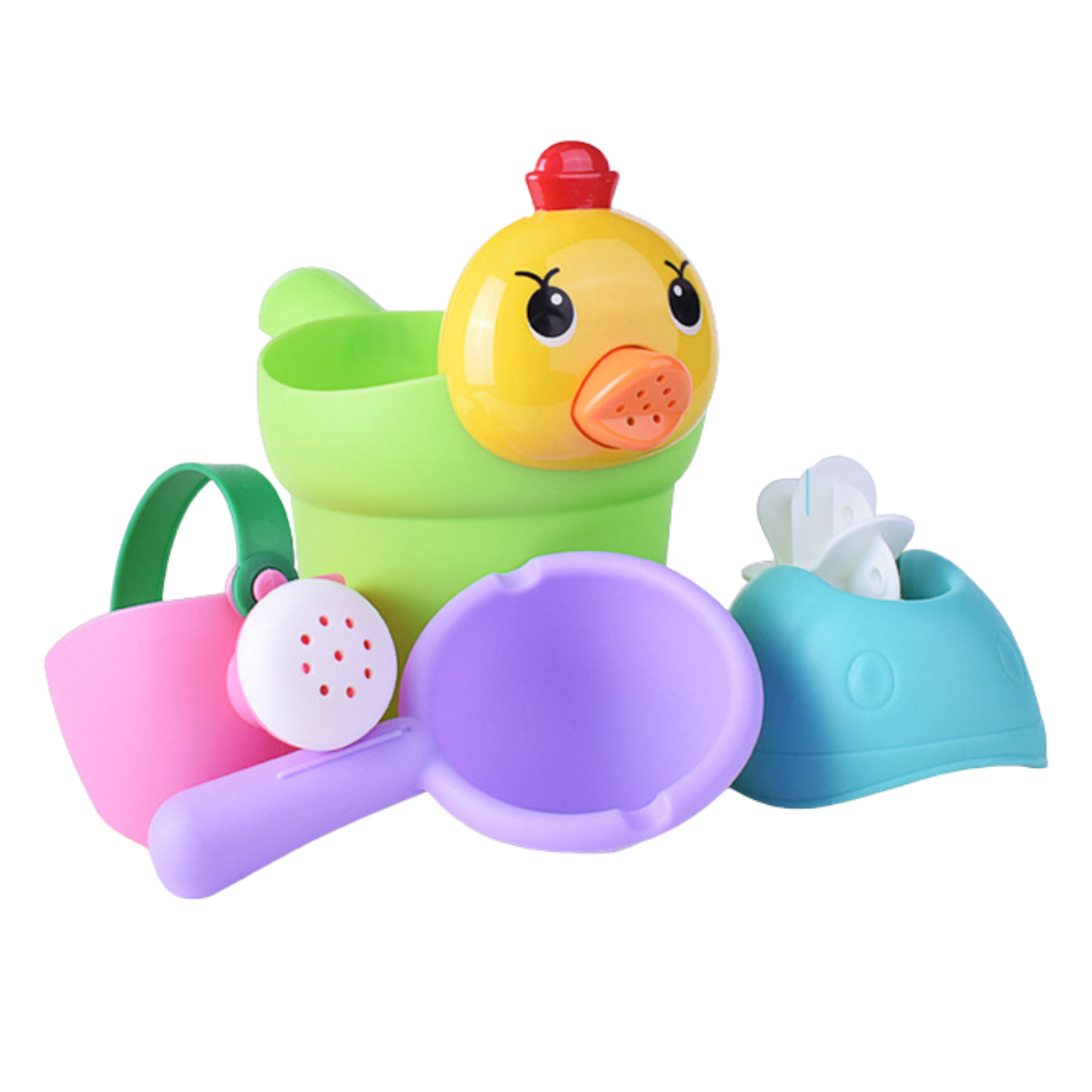 Zestaw zawiera również małą konewkę, łyżkę i inne akcesoria, które umilą maluchowi każdą kąpiel. Różnorodne kształty i kolory zapewnią fascynującą zabawę, ale także wsparcie rozwoju poznawczego dziecka.